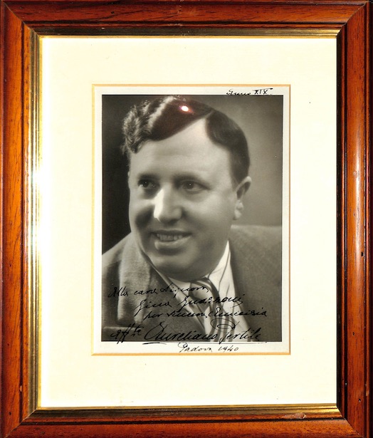 Ritratto fotografico del famoso tenore padovano con dedica autografa a Gina Guazzoni, datato Padova 1940.