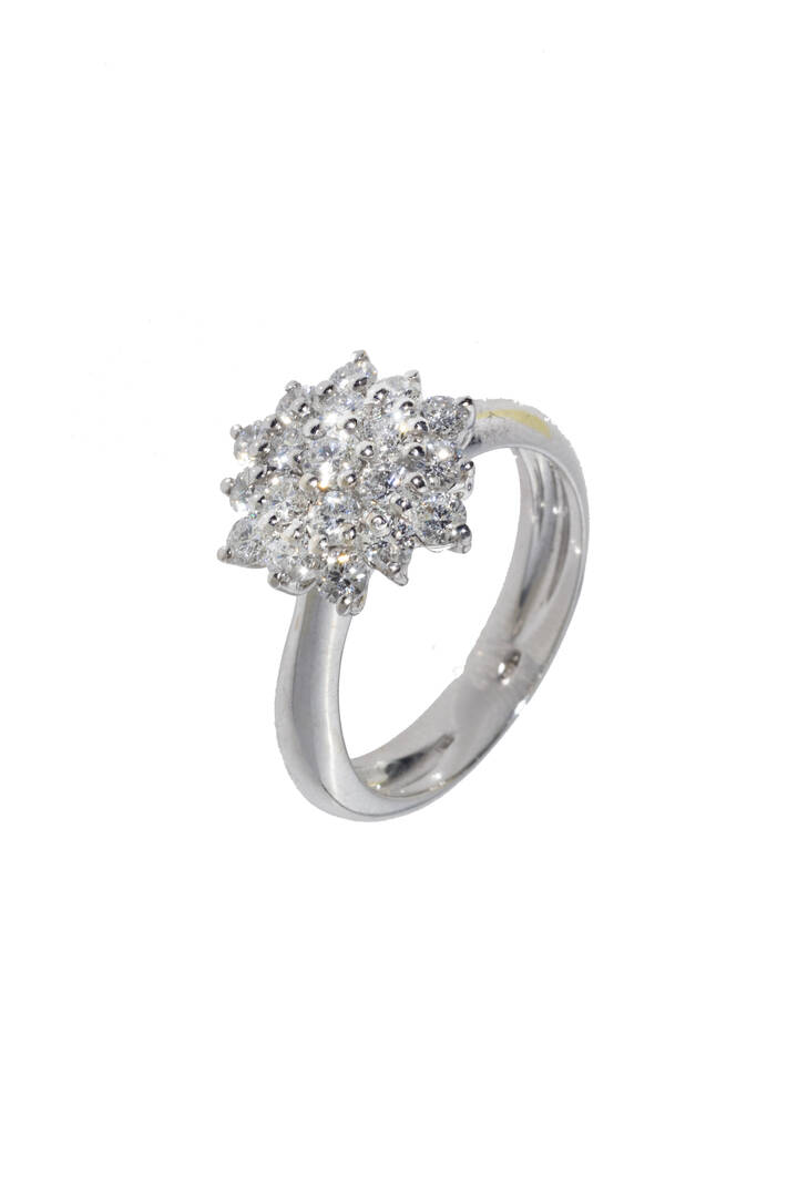 in oro bianco, sommità a fiore con diamanti taglio brillante per totali ct 1,09 ca, probabile colore G-H, purezza IF-VVS