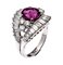 in oro bianco con al centro un rubino di ct 2,0 ca e diamanti taglio baguette e brillante per totali ct 1,70 ca, probabile colore G-H, purezza IF-VVS