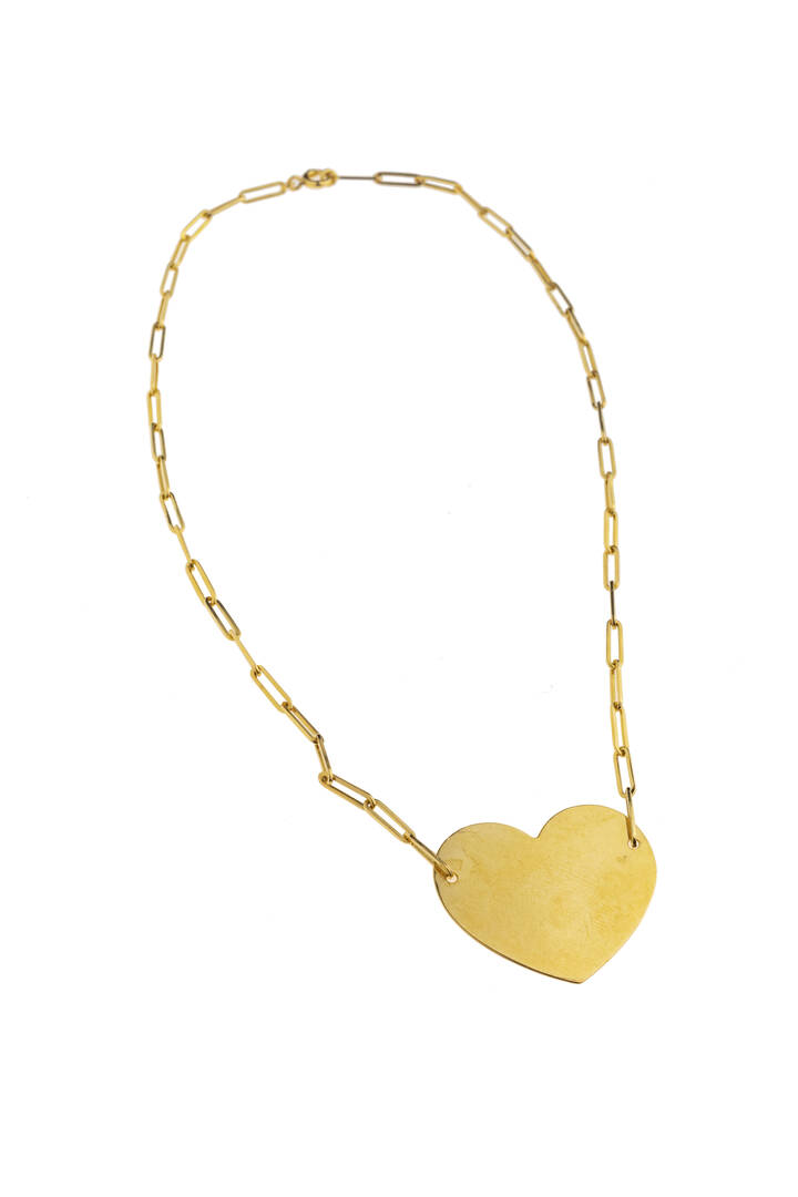 in oro giallo, maglia ad anelli geometrici al centro cuore