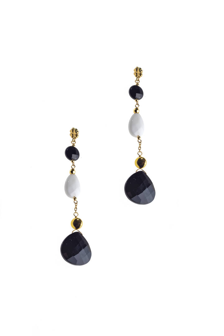 pendenti in oro giallo con gocce briolette di agata bianca e gocce e dischi di onice sfaccettato
