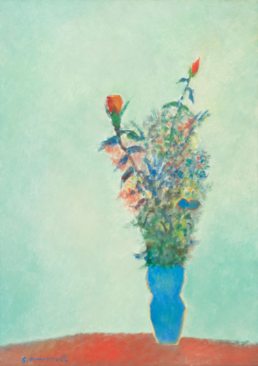 Giovanni Omiccioli Vaso di fiori Olio su cartone, cm. 51x36 Firmato in basso a sinistra. Sul verso: scritto di Autenticità dell'Artista; Etichetta "Contemporarte", Firenze, con descrizione.
