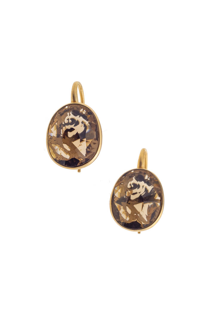 Coppia di orecchini in oro rosa satinato, firmati "Pomellato", modello "Arabesque", con quarzi fumé taglio fantasia