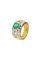 in oro giallo e bianco, a fascia, al centro smeraldo taglio ottagonale a gradini di ct 1.30 ca e ai lati diamanti taglio brillante per totali ct 0,90 ca