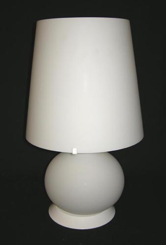 Lot 18 | Lampada da tavolo a due luci con struttura e paralume in vetro latteo. Alt. cm55