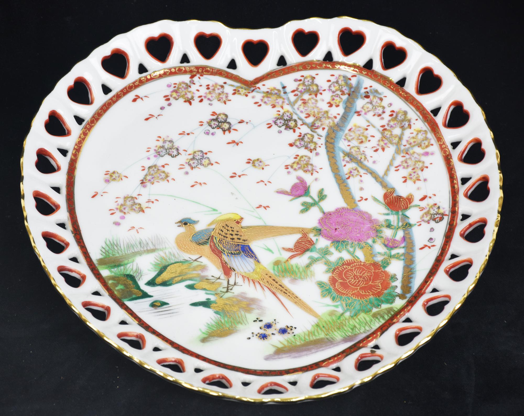 PIATTO IN PORCELLANA CINESE a forma di cuore, decorato con motivi floreali e...