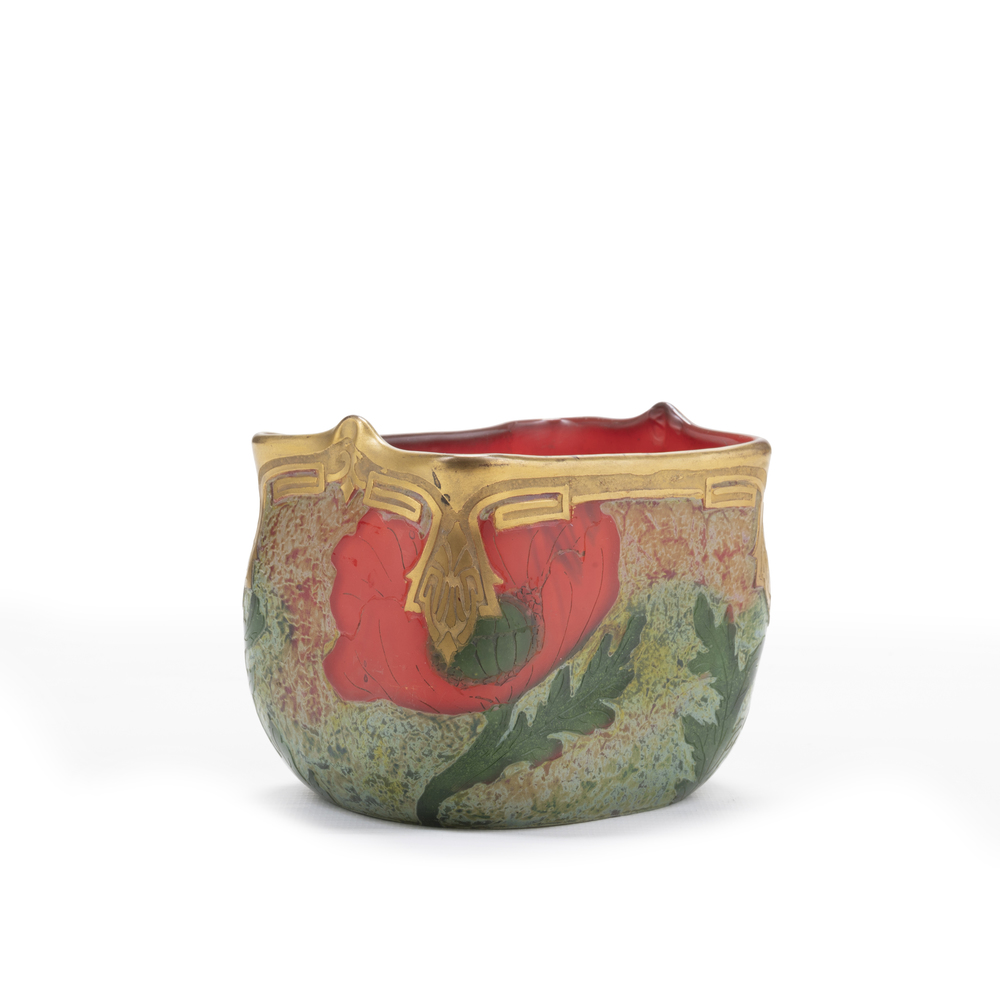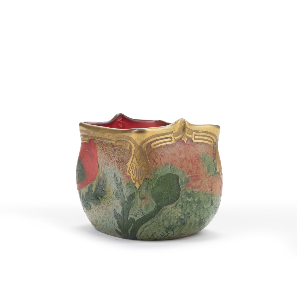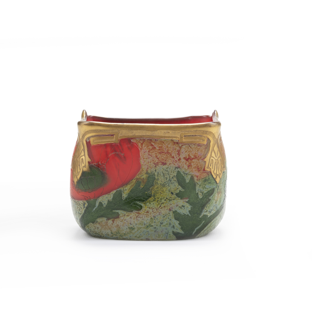 A polychrome glass vase from the Indiana series, rectangular in shape