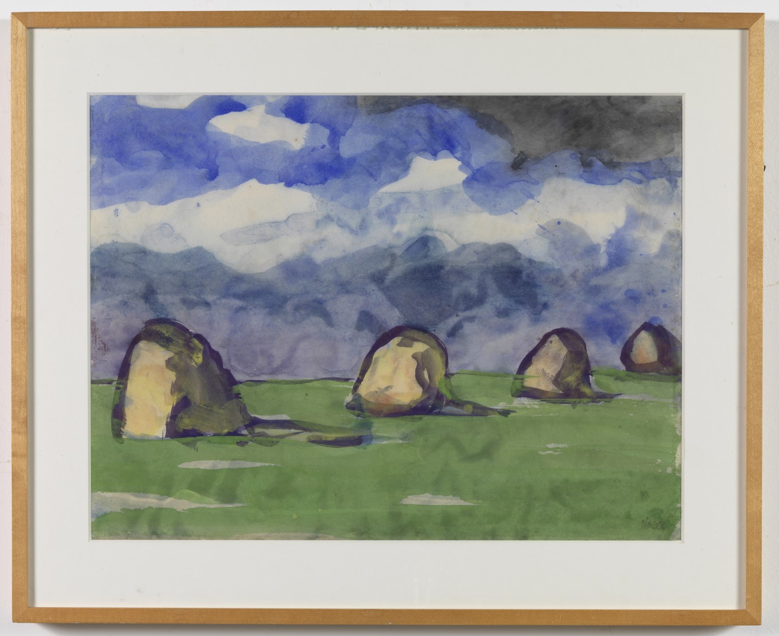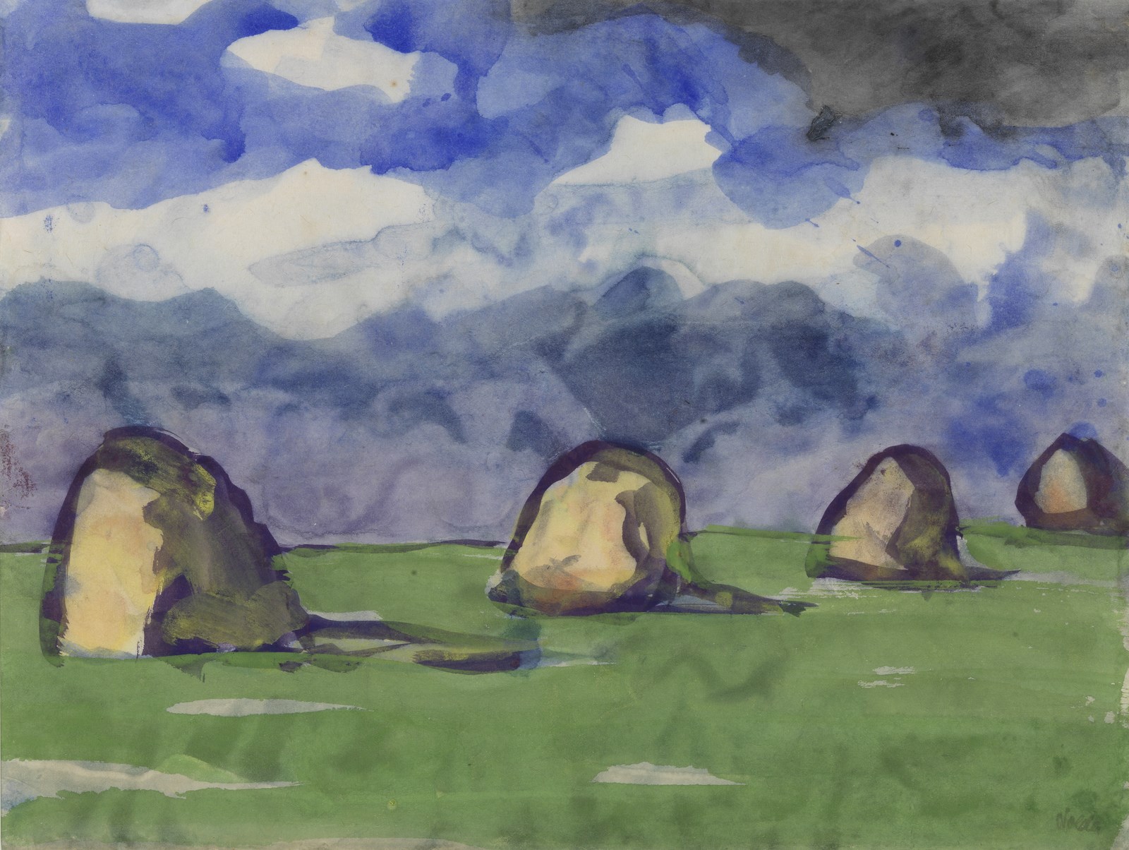 NOLDE EMIL (1867 - 1956) Senza titolo. Acquarello su carta. Cm 46,60 x 35,30. Firma in basso a destra. Autentica su fotografia del Prof. Manfred Reuther riportante il relativo numero d'inventario. 1930/1940. Cornice presente