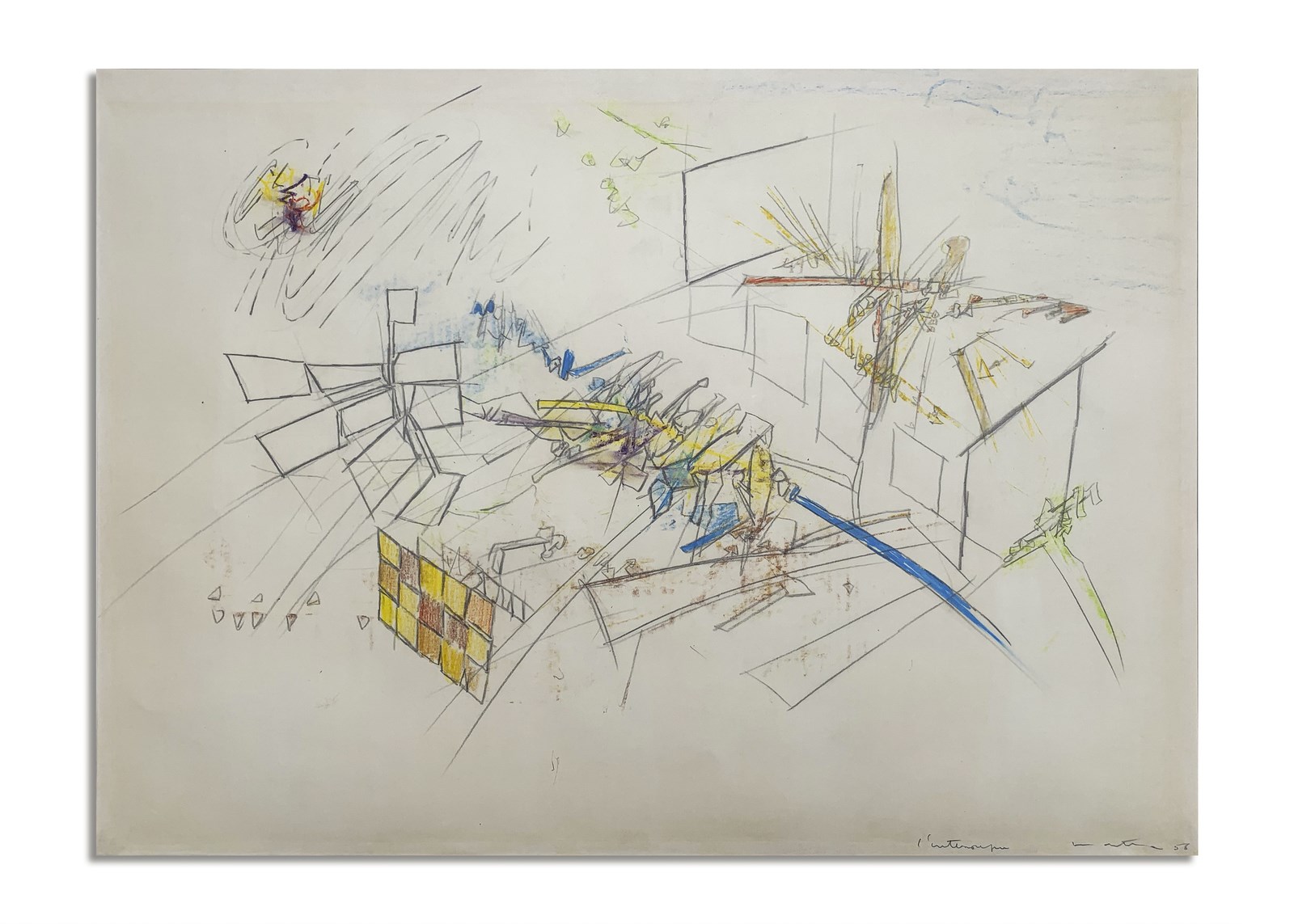 MATTA ROBERTO SEBASTIAN ANTONIO (1911 - 2002) Senza titolo. 1956. Tecnica mista su carta. Cm 65,00 x 55,00. Firma e anno in basso a destra. Pubblicazione: Matta a cura di Achille Bonito Oliva, L'Attico Esse Arte, Roma, 16 Gennaio - 13 Marzo 1982, pag.24. Esposizione: Matta, L'Attico Esse Arte, Roma, 16 Gennaio - 13 Marzo 1982. Provenienza: L'Attico Esse Arte, Roma. Collezione privata, Roma. Lievi difetti.