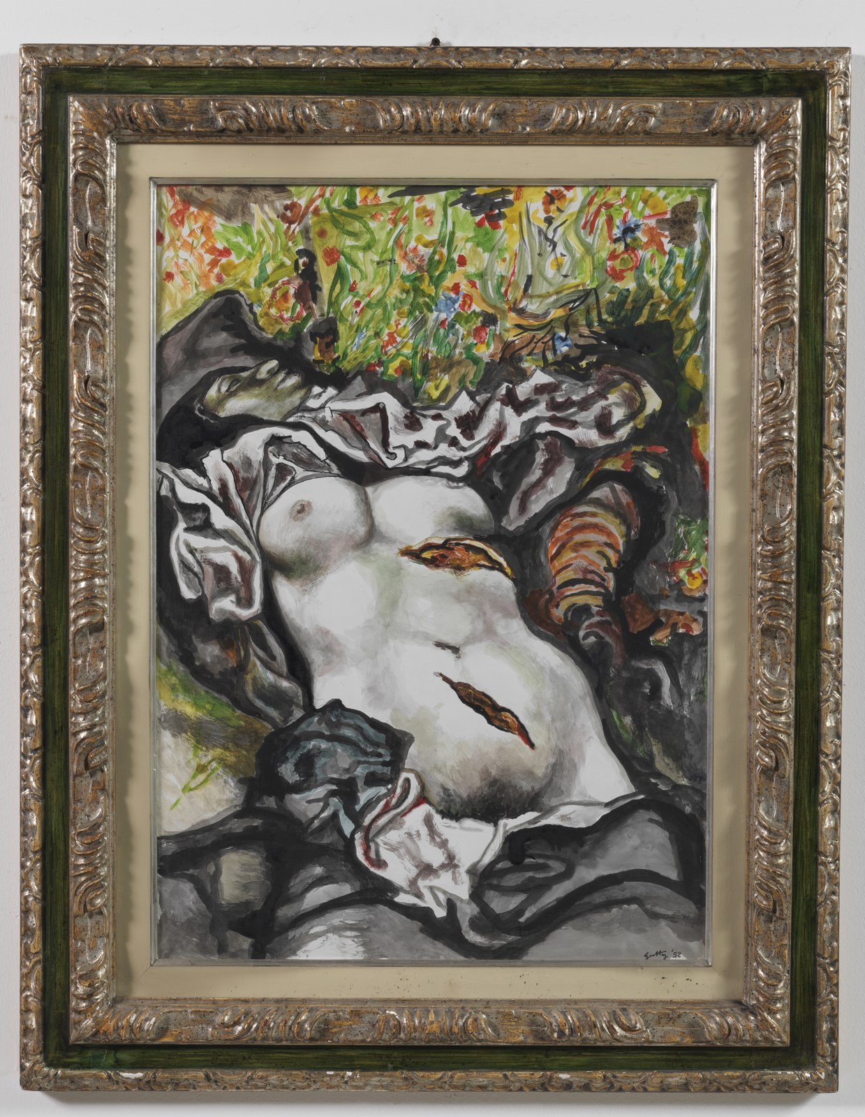 GUTTUSO RENATO (1912 - 1987) Partigiana Jugoslava. 1952. Tecnica mista su carta applicata su tela . Cm 50,00 x 71,00. Firma e anno in basso a destra. Pubblicazione: Catalogo Ragionato Generale dei Dipinti di Renato Guttuso, Milano 1984, Volume IV, p.232 (datazione errata). M. de Micheli, Renato Guttuso: Kresby z let 1949 - 1976, catalogo della mostra, 1979, n. 32. Opera registrata presso gli Archivi Guttuso, Roma: n. 1815411383. Esposizione: Renato Guttuso: Kresby z let 1949 - 1976, Nàrodnì Galerie v Praze, Praga. . Cornice presente