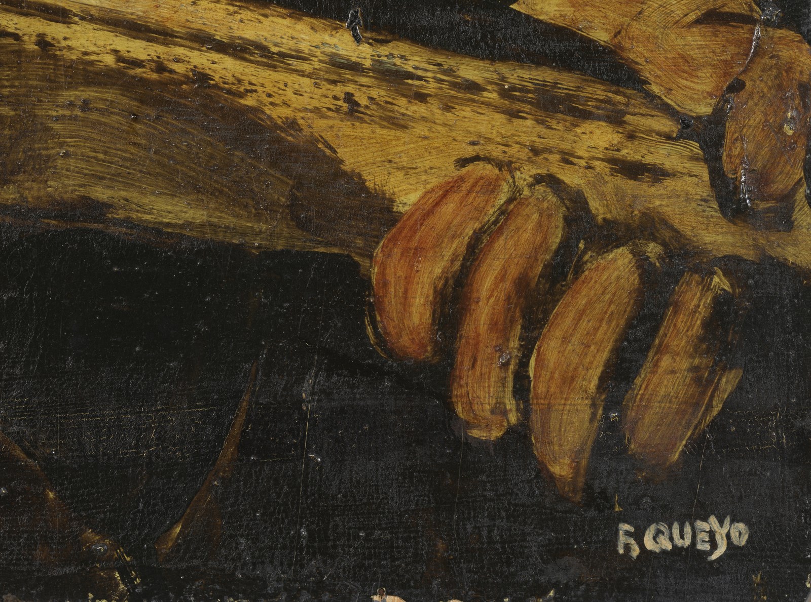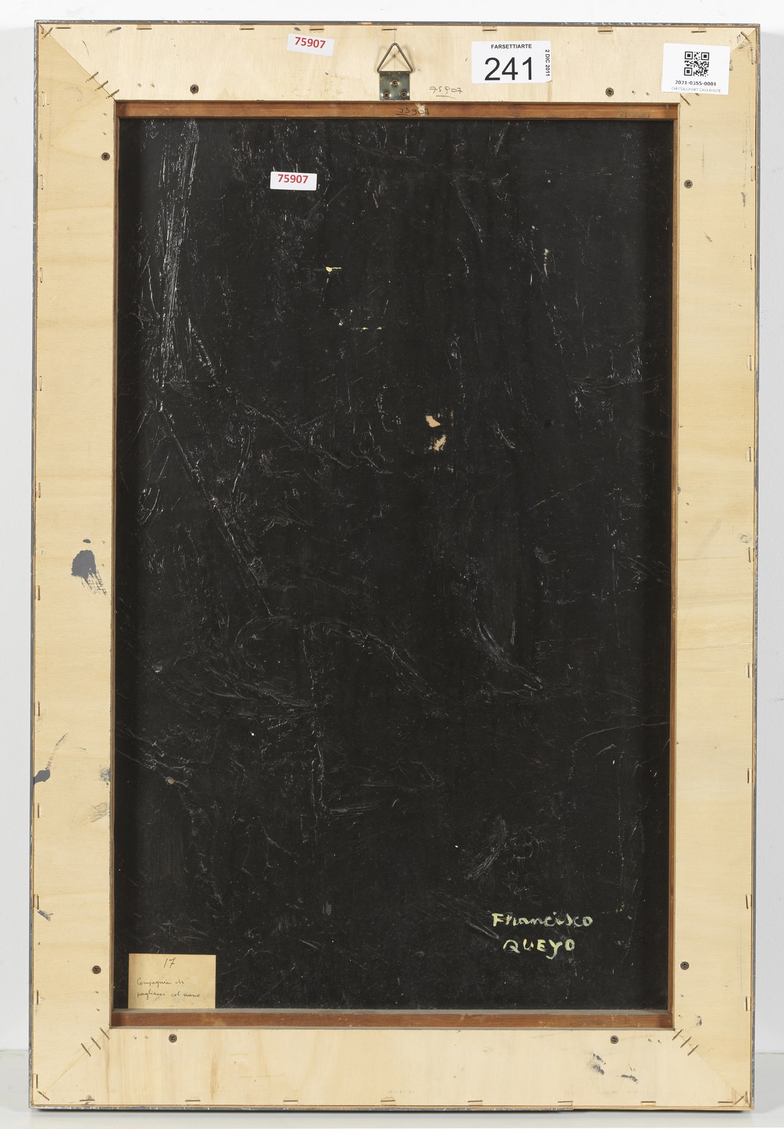 Nella Milano degli anni'40 sembrava non esserci spazio per le opere di Salvatore Fiume. Eppure, determinato ad affermarsi nella comunità artistica, decise di ricorrere ad un originale stratagemma. Inventò l'esistenza di un pittore gitano-spagnolo, gli diede il nome di Francisco Queyo, e produsse una serie di opere ispirate alla tradizione spagnola e al folclore gitano. Opere che ottennero un grande successo presso la Galleria Gussoni, Milano. Si ringrazia la Fondazione Salvatore Fiume per aver contribuito alla stesura della scheda. Lievi difetti. Cornice presente