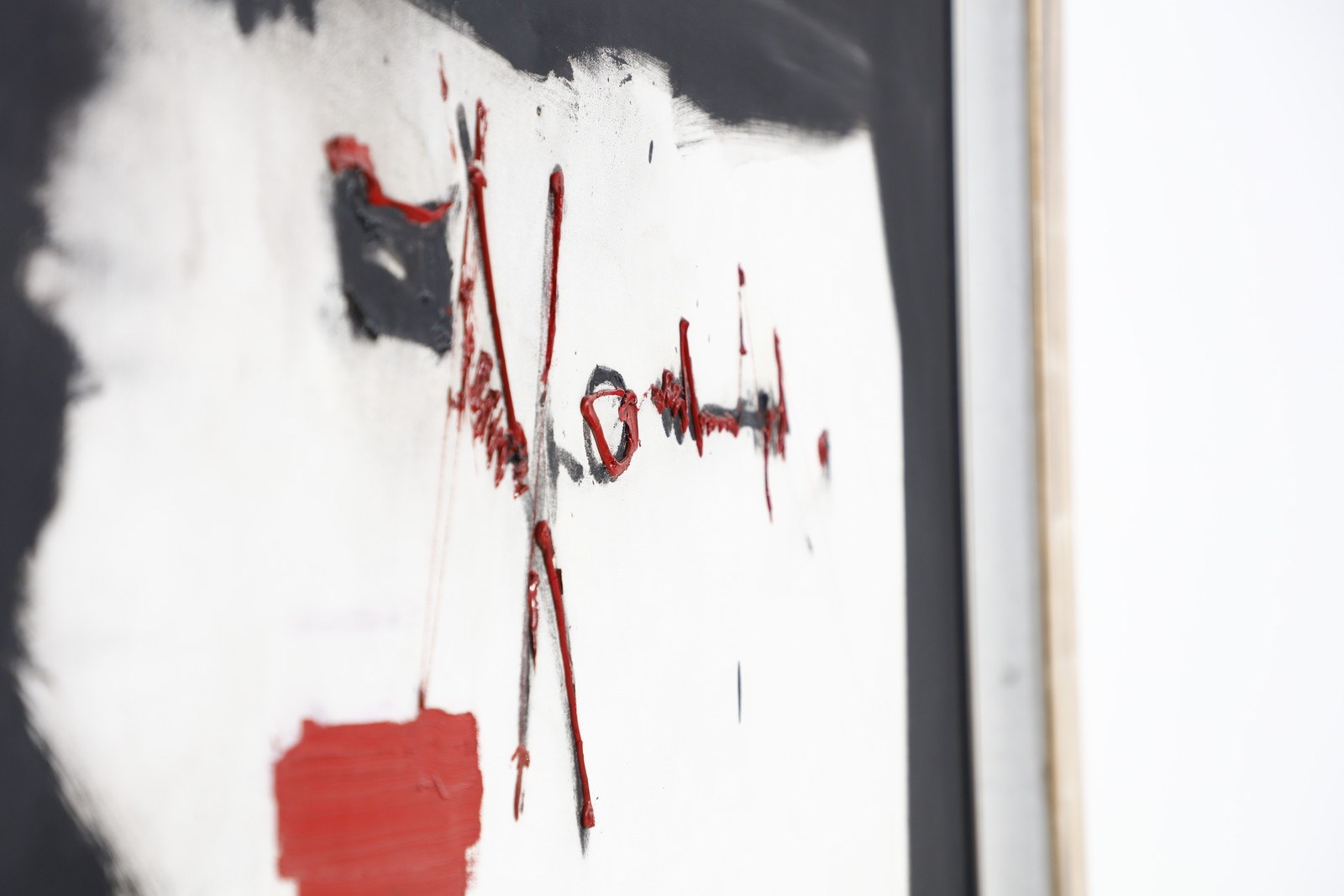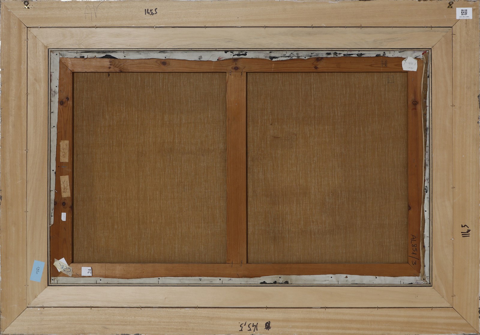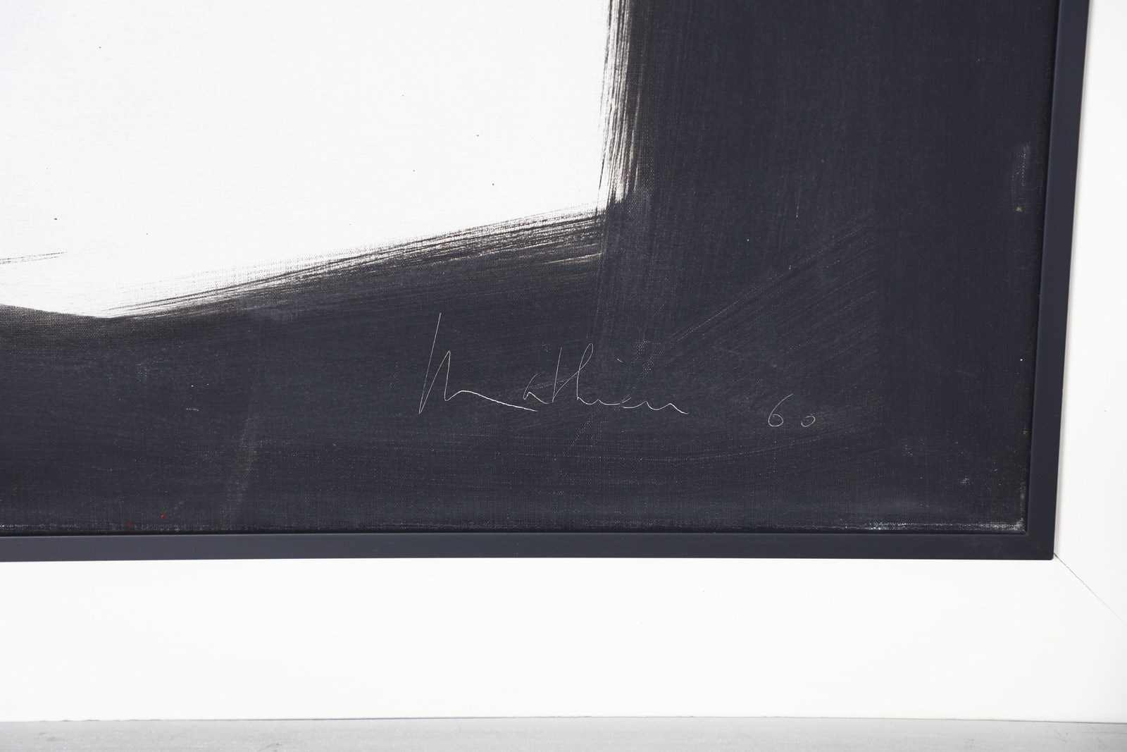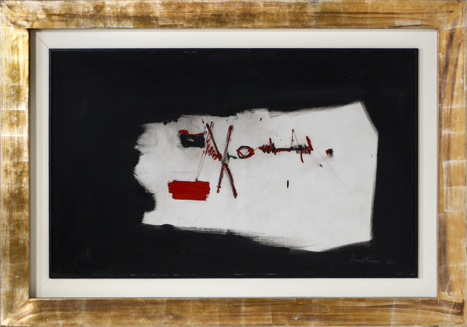 MATHIEU GEORGES (1921 - 2012) Senza titolo. 1960. Olio su tela . Cm 128,00 x 80,00. Firma e anno in basso a destra. Autentica su fotografia di Laurence Izern (12 Luglio 2007). Pubblicazione: Tableau modernes, collection d'un amateur, Palais Galliera, Paris, 1961, n.41; L'Amateur d'Art n.444, 1969, p.20. Provenienza: Galleria Dante Vecchiato, Padova; Collezione privata, Treviso. Cornice presente