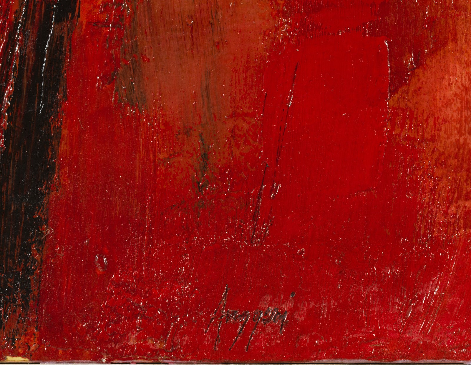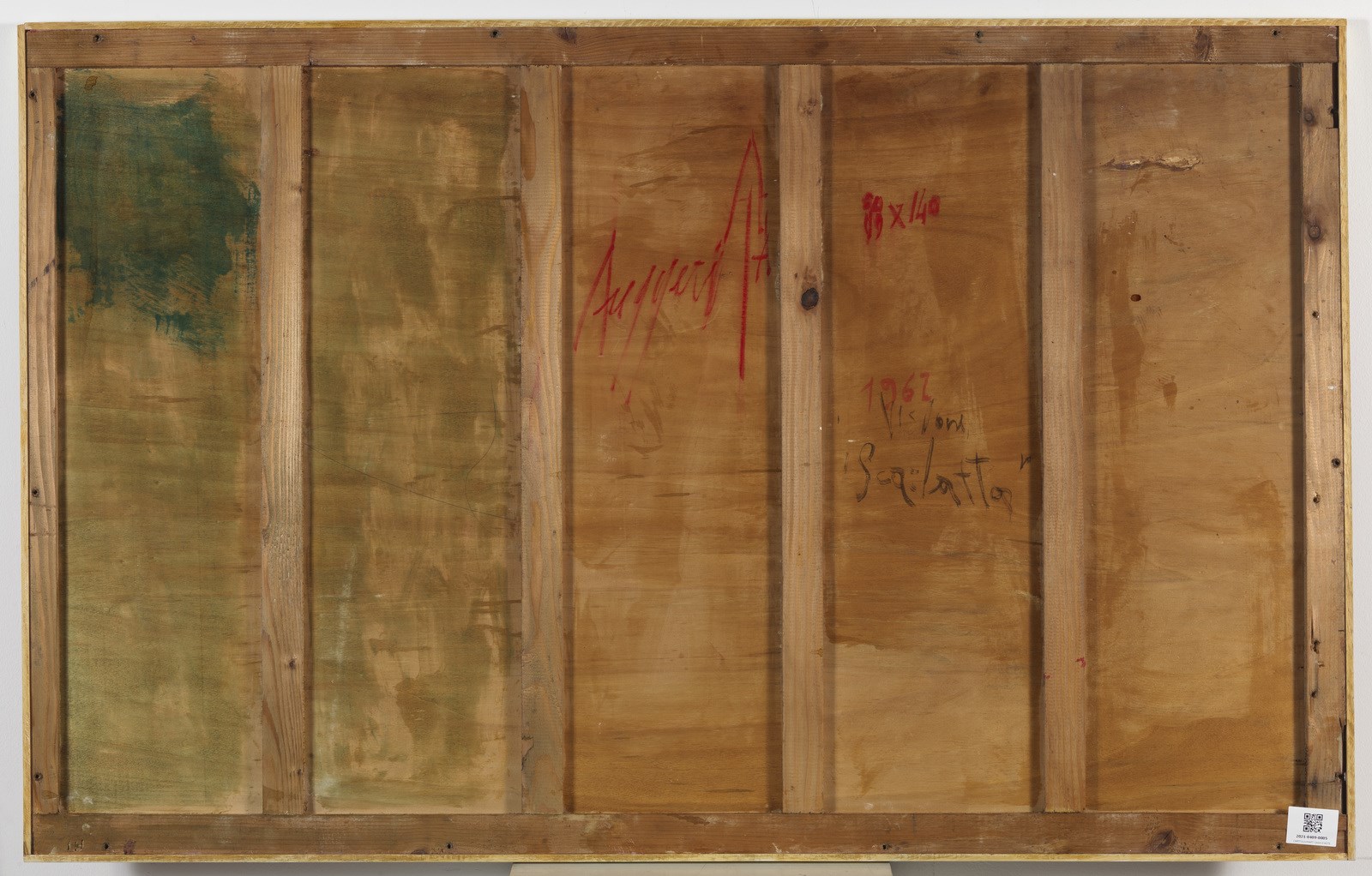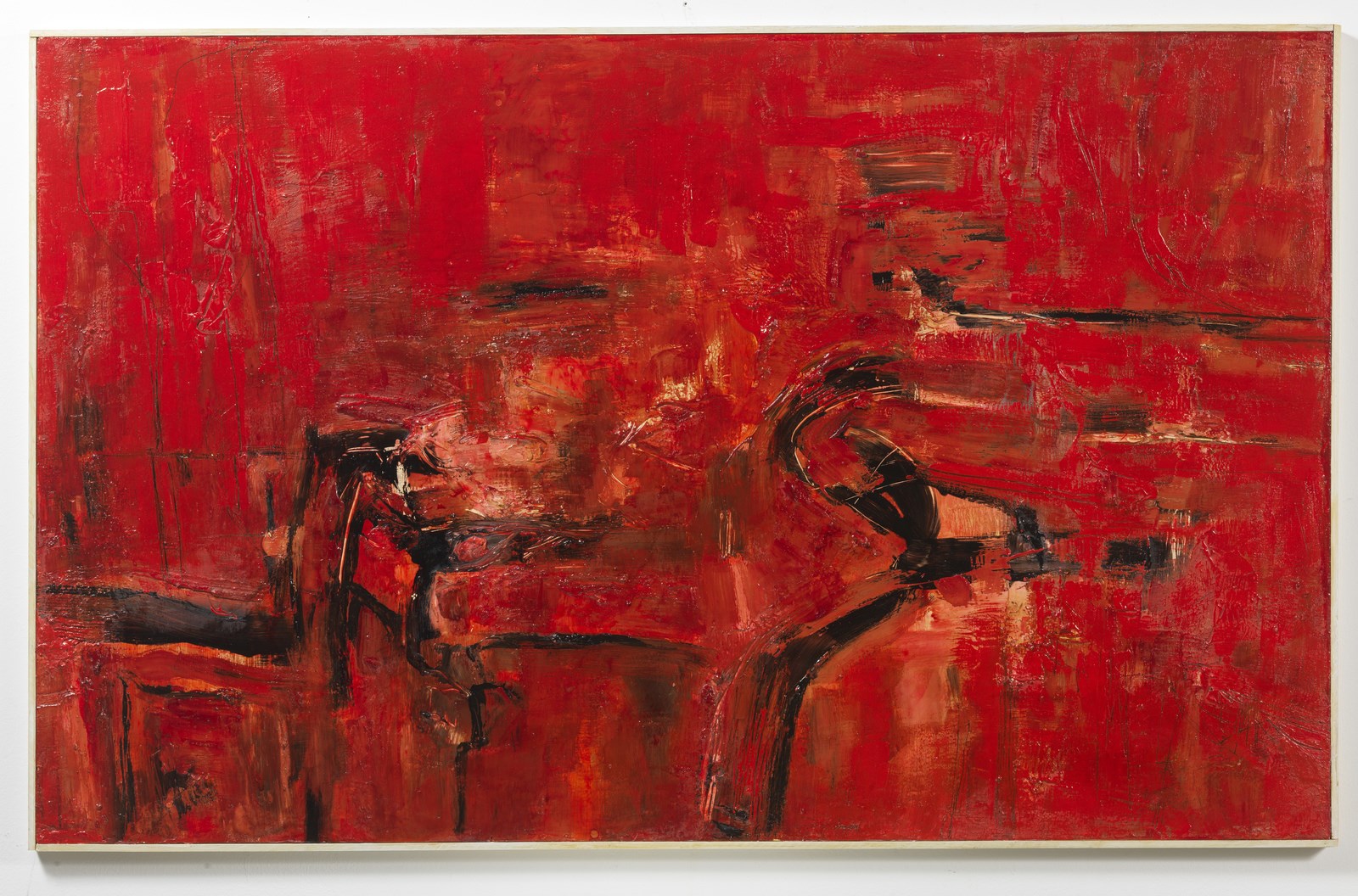 RUGGERI PIERO (1930 - 2009) Visione scarlatta. 1962. Olio su tavola. Cm 140,00 x 88,00. Firma in basso al centro. Al retro titolo, firma e anno. Opera archiviata presso la Fondazione Piero Ruggeri, Avigliana, come da documentazione fotografica allegata all'opera riportante il relativo numero d'inventario.
