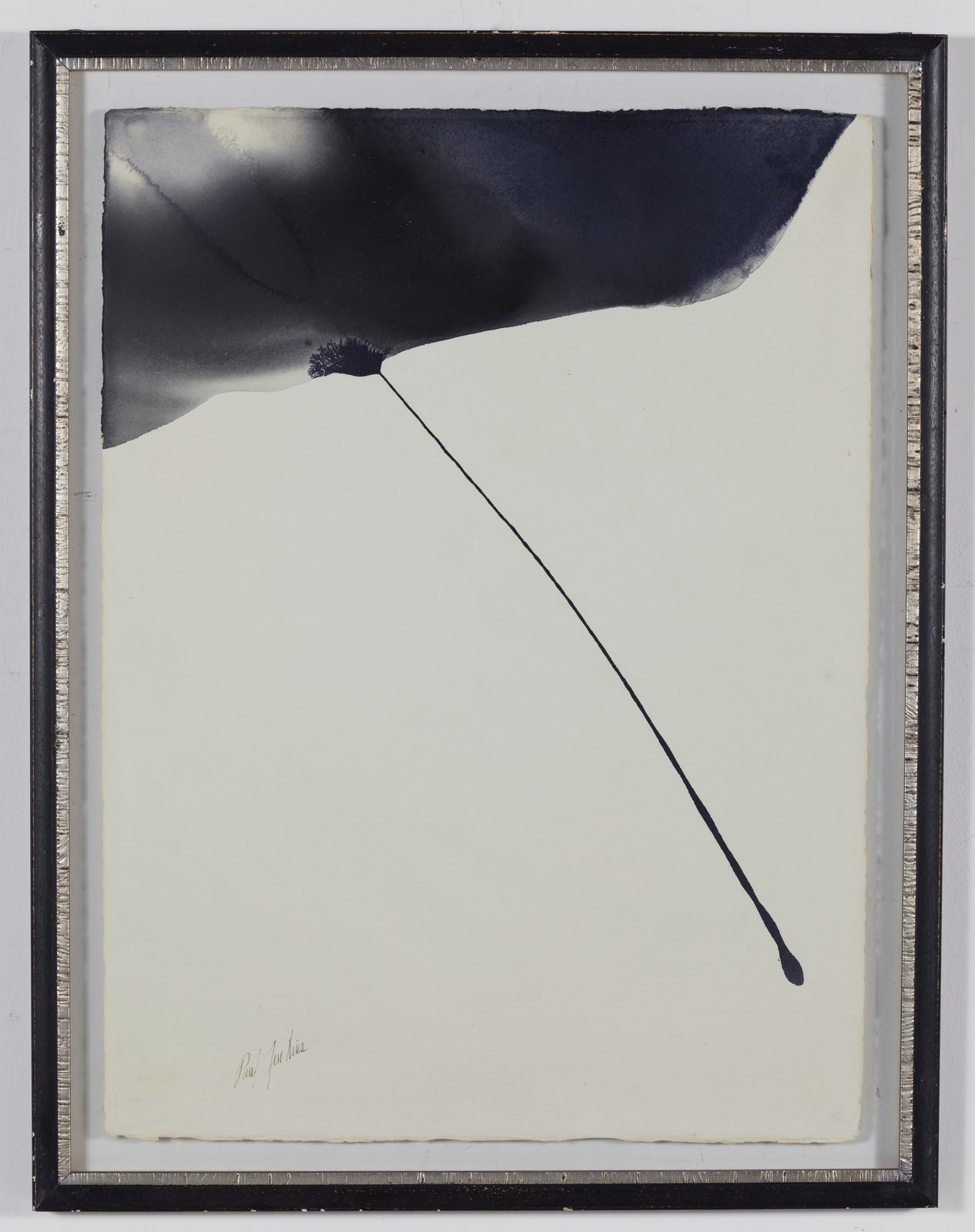 JENKINS PAUL (1923 - 2012) Phenomena Black Will Out. 1964. Tecnica mista su carta. Cm 57,00 x 75,00. Firma in basso a sinistra. Carta Arches, France. Cartiglio della Jonathan Novak Contemporary Art, Los Angeles; Corcoran Gallery; Martha Jackson Gallery, New York. Esposizione: Paul Jenkins: Discoveries in Watercolor, Corcoran Gallery, 1973-1975. Cornice presente
