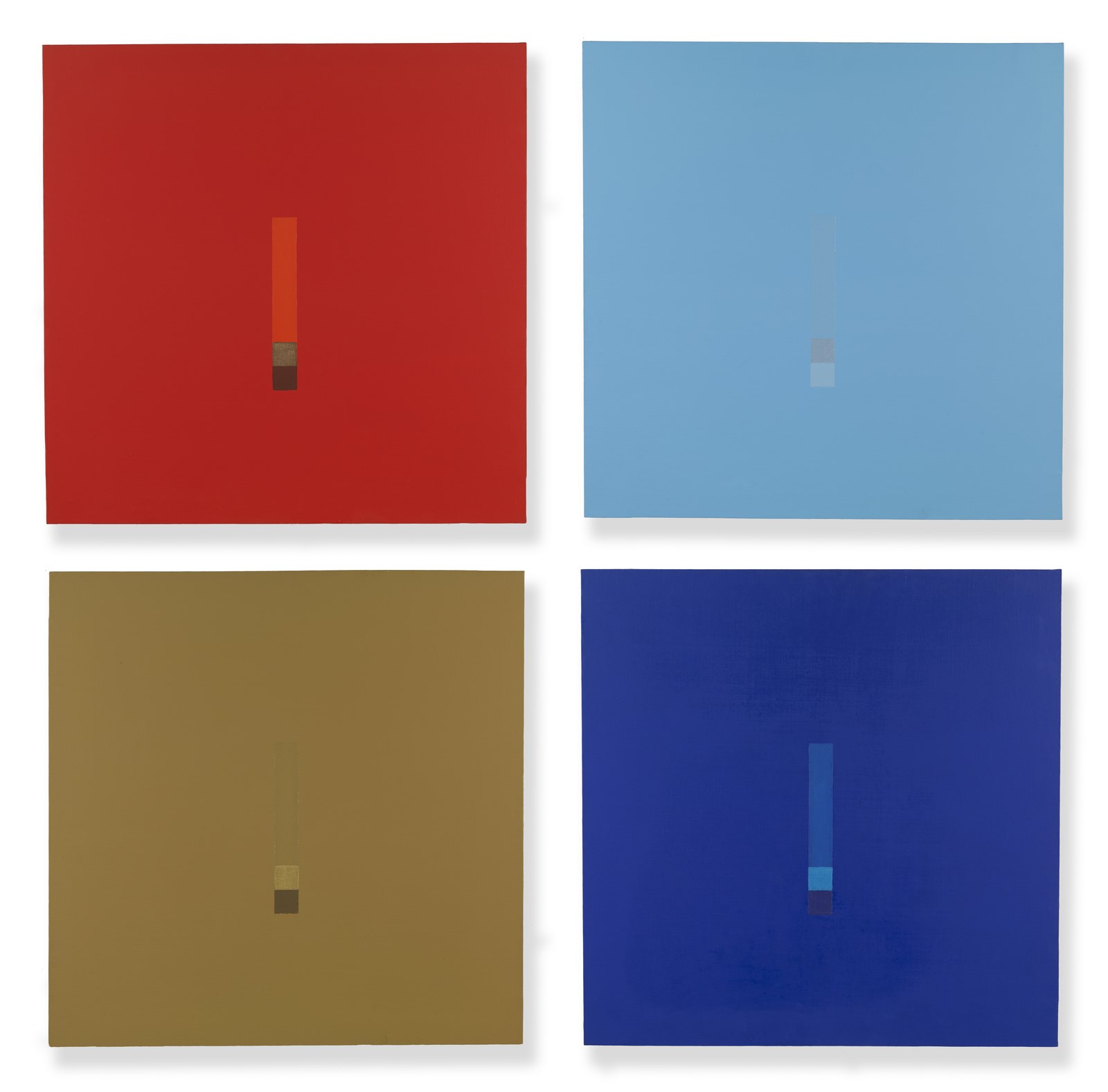 TORNQUIST JORRIT (n. 1938) 4 Elementi. Opus 702-701-703-700. 1975. Acrilico su tela. Cm 80,00 x 80,00. Al retro titolo, firma, anno e cartiglio Galleria La Polena, Genova. Opera archiviata presso Jorrit Tornquist Archive come da documentazione fotografica allegata all'opera riportante il relativo numero d'inventario. Esposizione: Galleria La Polena, Genova, 11 Dicembre 1975 - 13 Gennaio 1976.