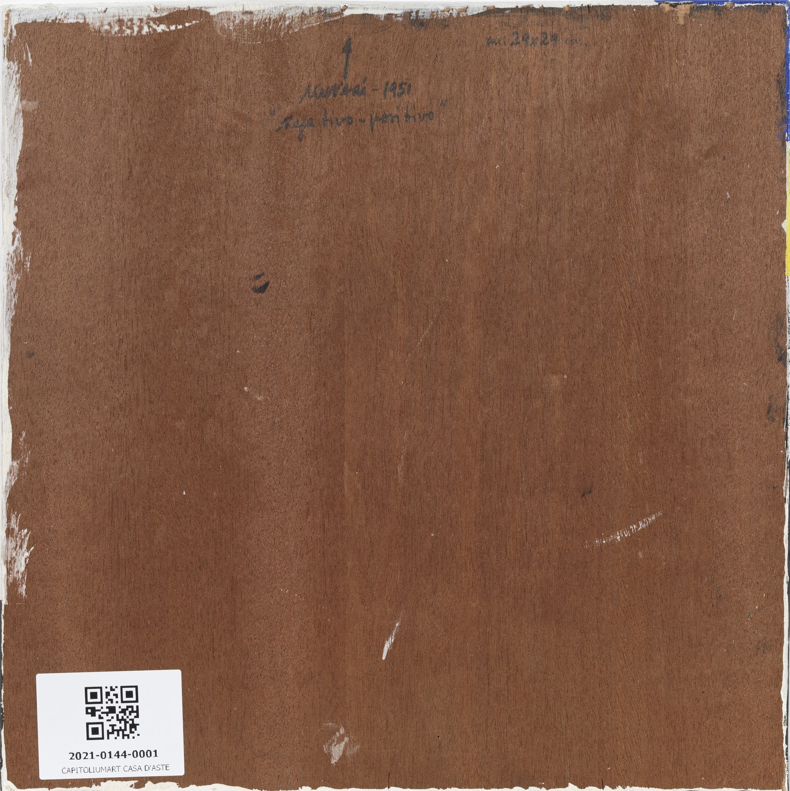 MUNARI BRUNO (1907 - 1998) Negativo - positivo. 1951. Tempera su tavola. Cm 29,00 x 29,00. Al retro titolo, firma e anno. Autentica su fotografia di Alberto Munari.