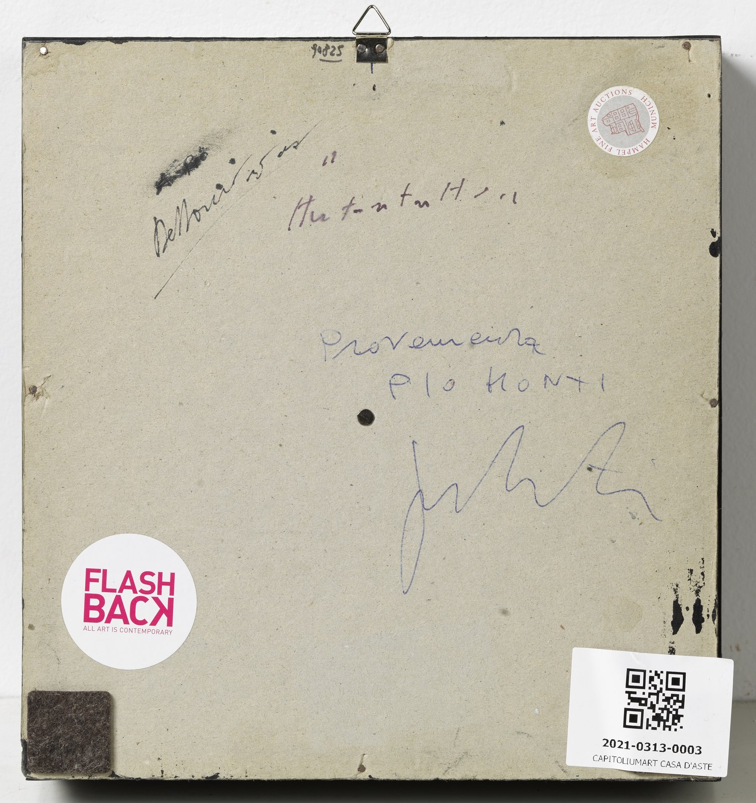 DE DOMINICIS GINO (1947 - 1998) Autoritratto (1962). Tecnica mista su tavola. Cm 23,50 x 24,00 x 7,00. Firma al retro. Provenienza: Galleria Pio Monti, Roma; Collezione privata; Farsetti 2018; Collezione privata, Brescia. Pubblicazione: Gino De Dominicis - catalogo ragionato, Volume I (1947 -1998), Skira Edizioni, pag.505 ( datazione primi anni'90); Vette, sentieri verso l'arte contemporanea, Palazzo Frisacco, Tolmezzo, 8 Luglio - 26 Settembre 2010, pag.27. Esposizione: Vette. Sentieri verso l'Arte Contemporanea, Tolmezzo, Palazzo Frisacco, 8 luglio - 26 settembre 2010. . Cornice presente