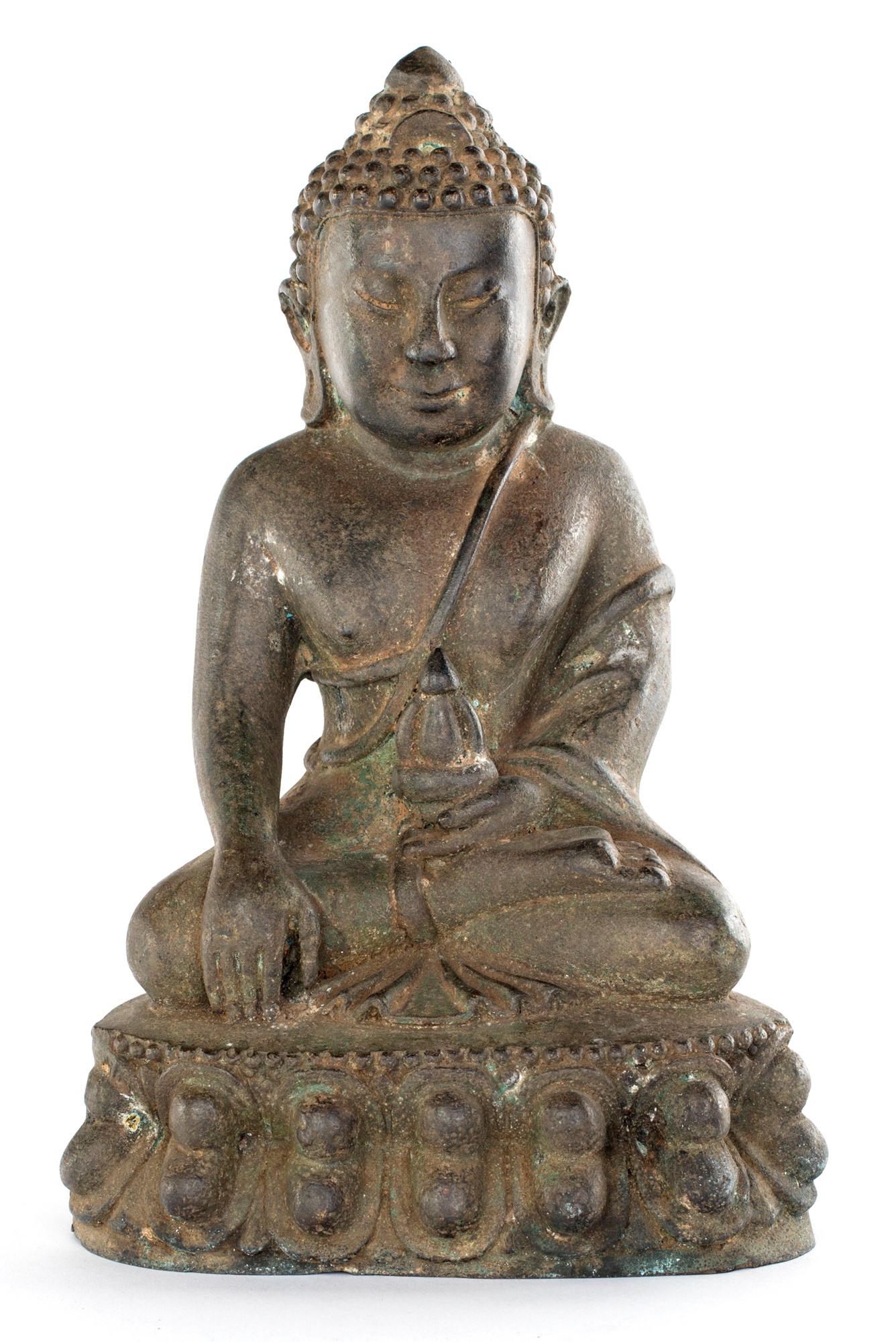 Buddha Bhumisparsha in metallo ferroso, Cina, dinastia Qing, metà del XIX secolo, 25x17