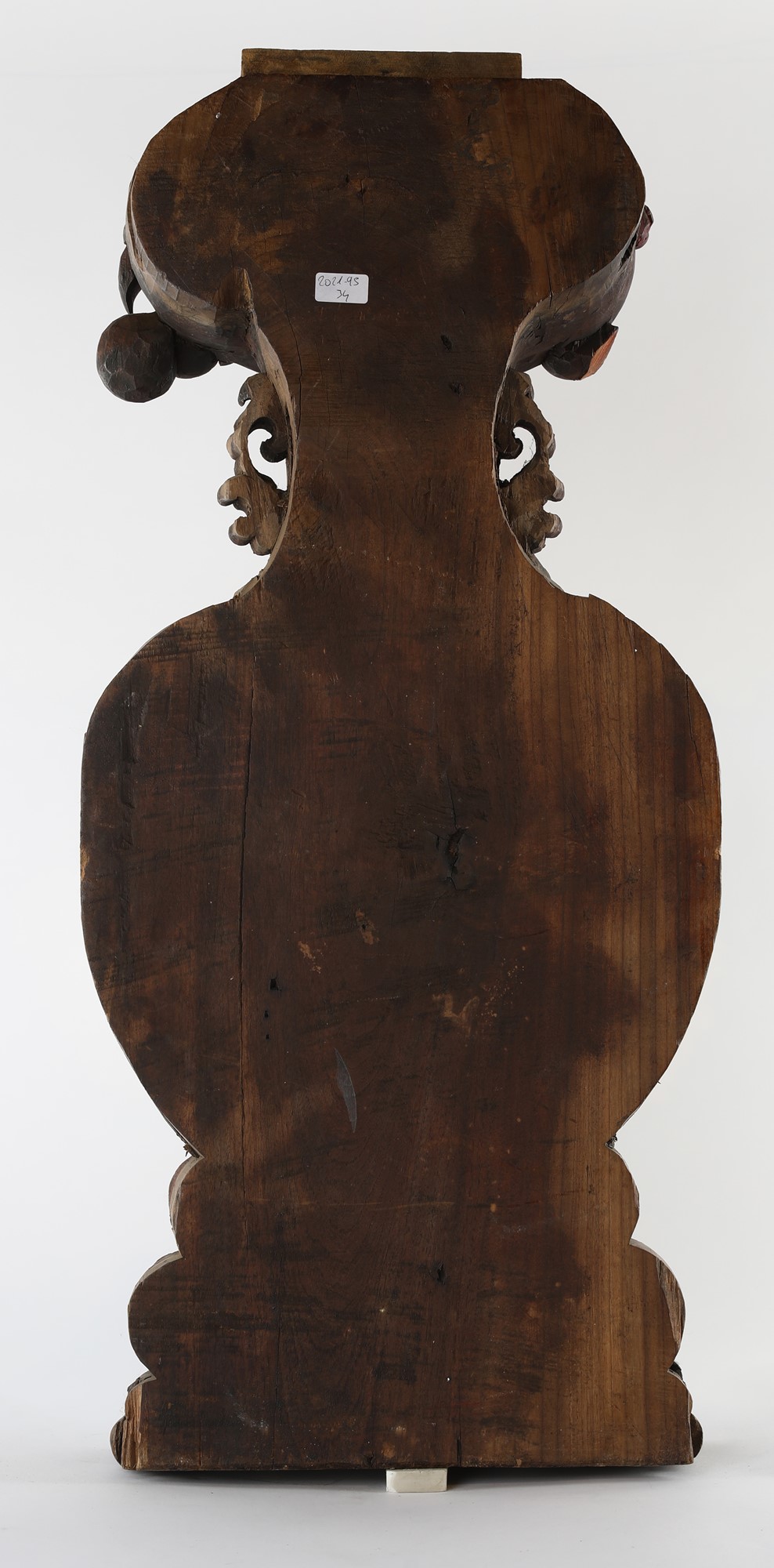 Decorazione lignea laccata e dorata, Cina, dinastia Qing, XIX secolo raffigurante un vaso con motivi decorativi intagliati in rilievo a raffigurare fiori, 75x33