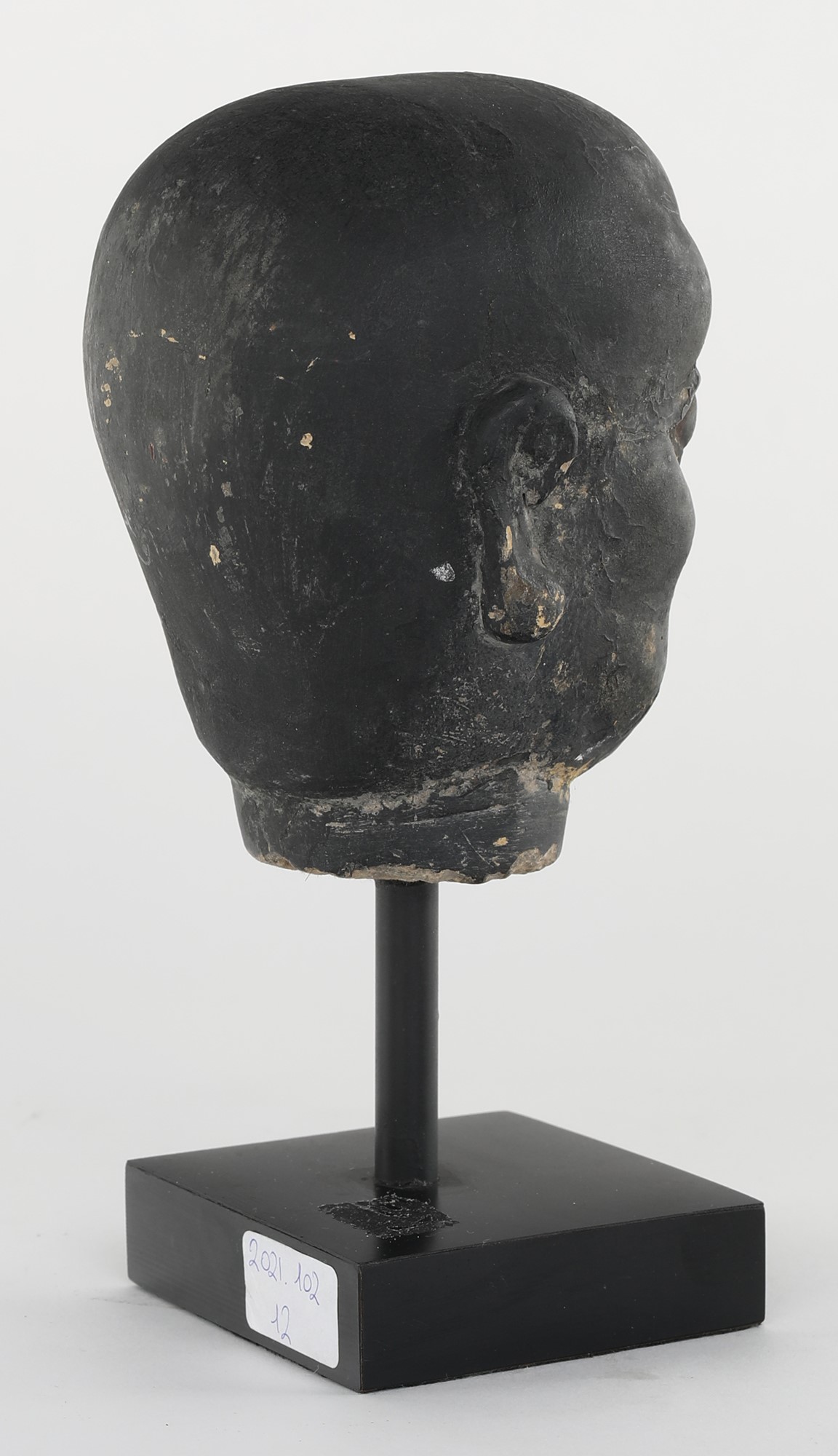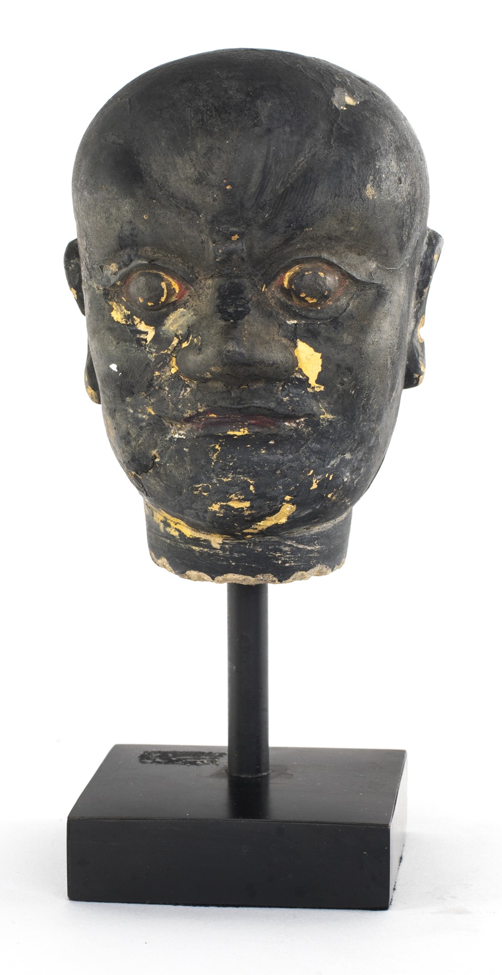 Testina in pietra arenaria laccata nera, Cina, dinastia Qing, inizio del XIX...