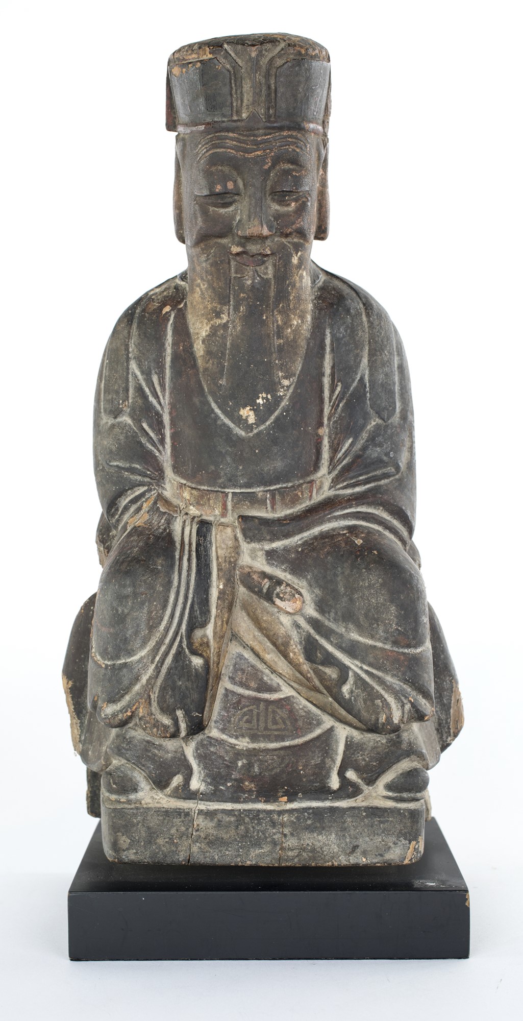 Saggio taoista in legno, Cina, dinastia Qing, inizio del XIX secolo ritratto seduto, cm 36x18