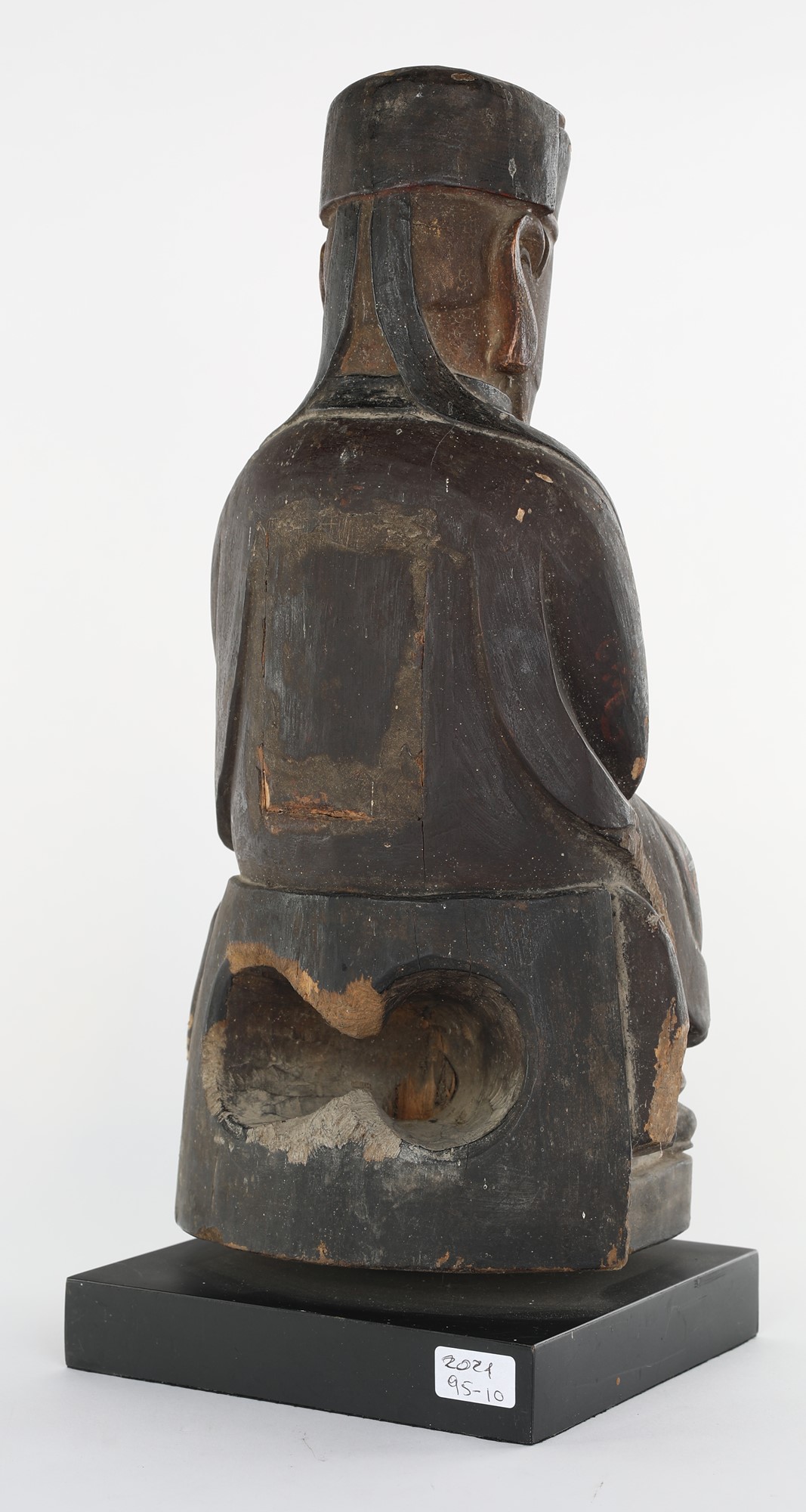 Saggio taoista in legno, Cina, dinastia Qing, inizio del XIX secolo ritratto...