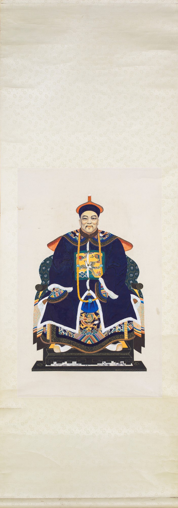 Rotolo verticale, Cina, XIX/XX secolo raffigurante un Imperatore, 180x65 - la parte dipinta: cm 85x50