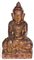 Buddha Bhumisparsha in pietra arenaria laccata in rosso e dorata, Birmania,...