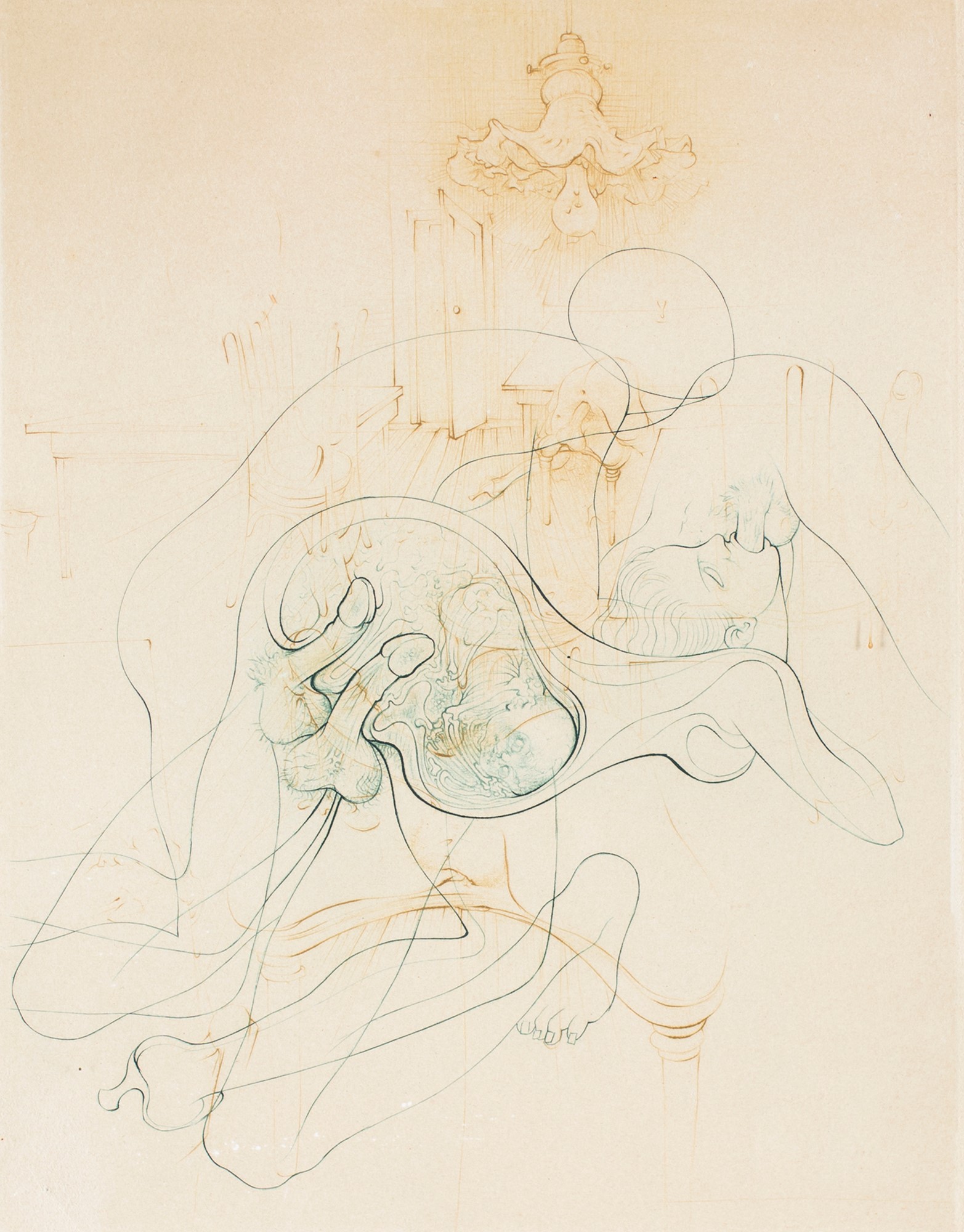 Hans Bellmer, Le Petit Traité de Morale, 1968 Acquaforte mm 376x284 (foglio), mm 275x210 (lastra). Firma e numerazione a matita sul fronte "Bellmer H.C." Bellmer, Oeuvre Grave, P. Denoel, riprodotta n. 86