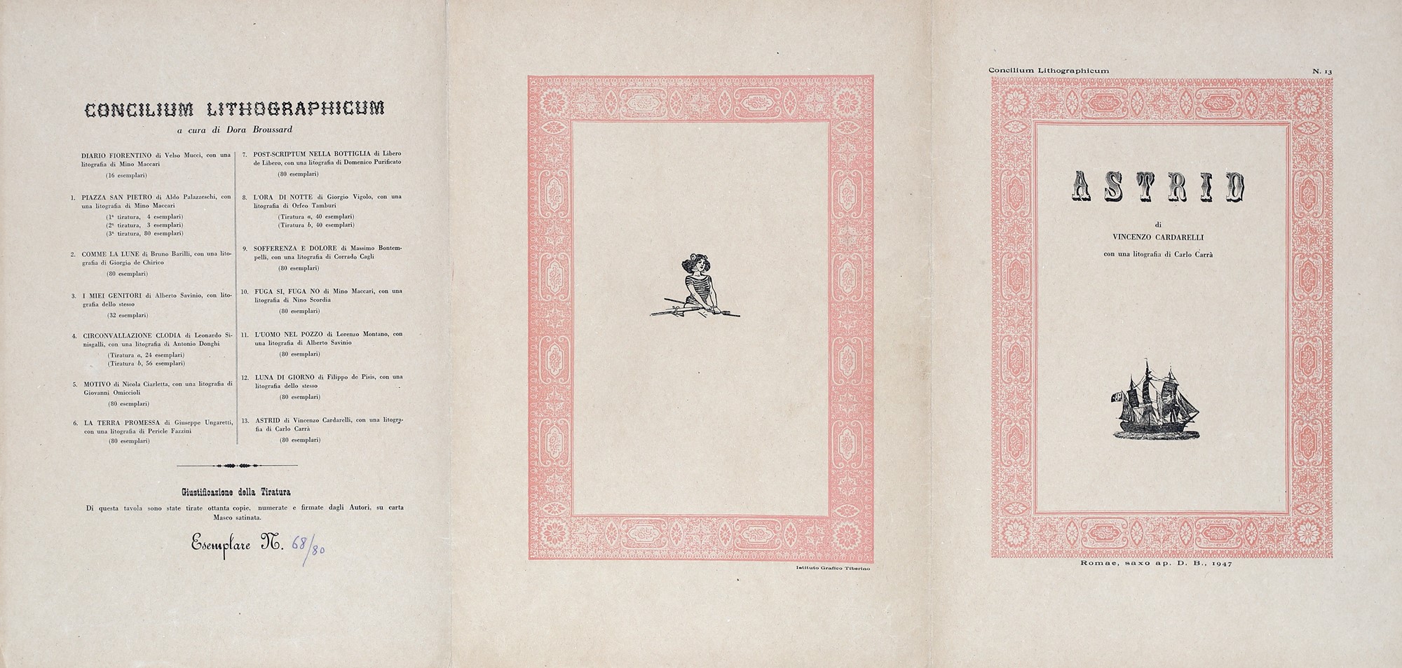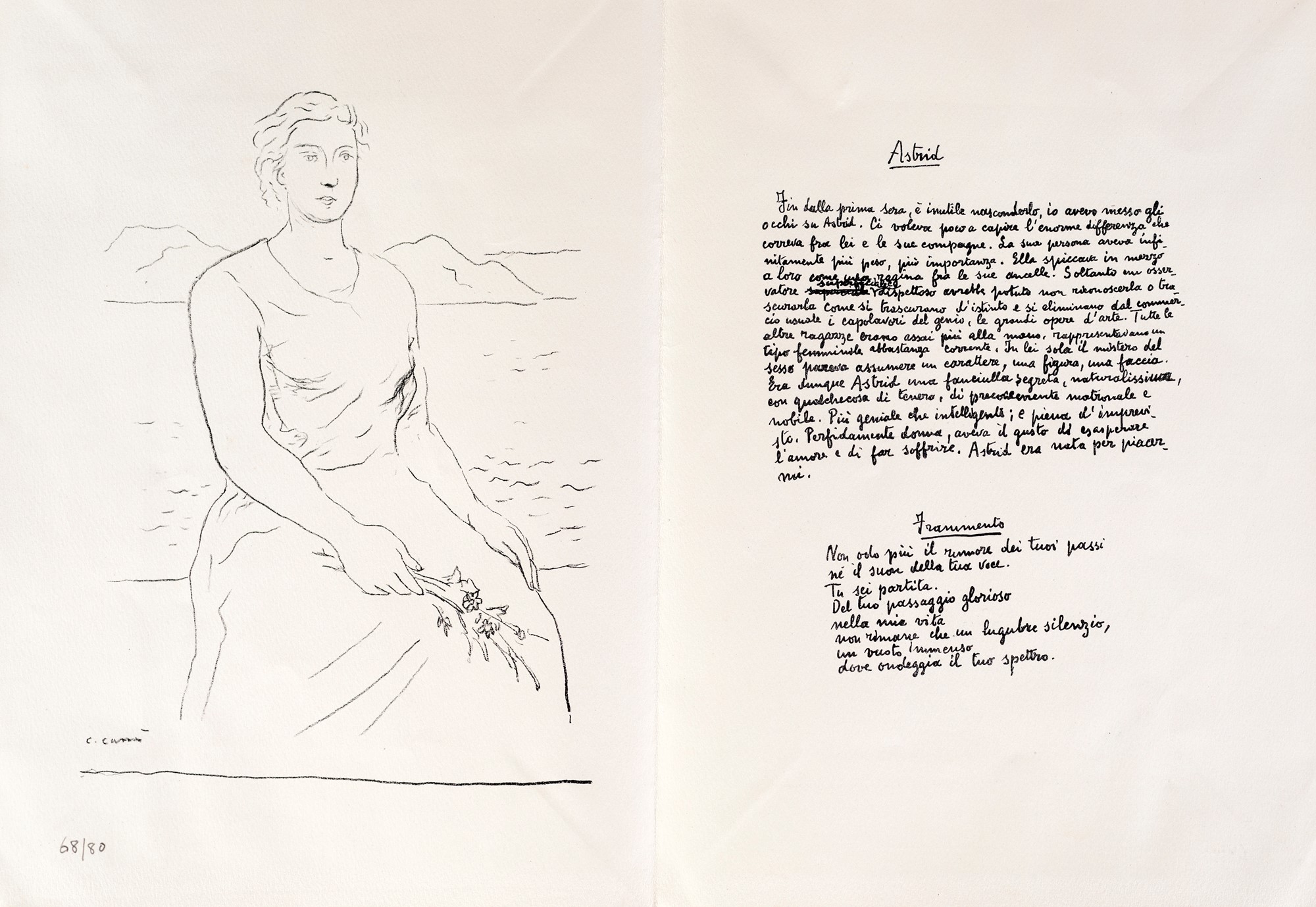 10) Astrid, testo di Vincenzo Cardarelli e litografia di Carlo Carrà, 1947. Esemplare 68/80.