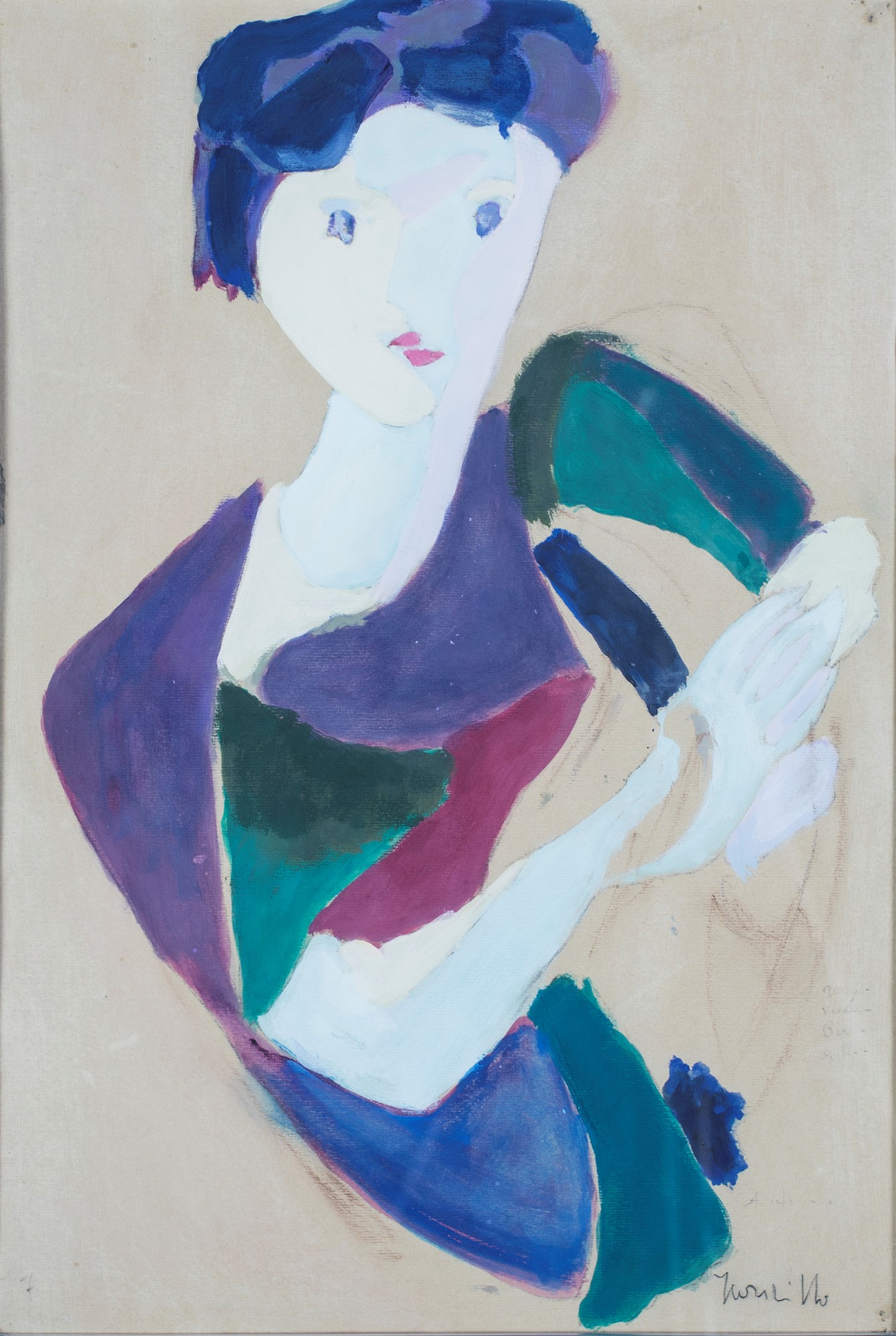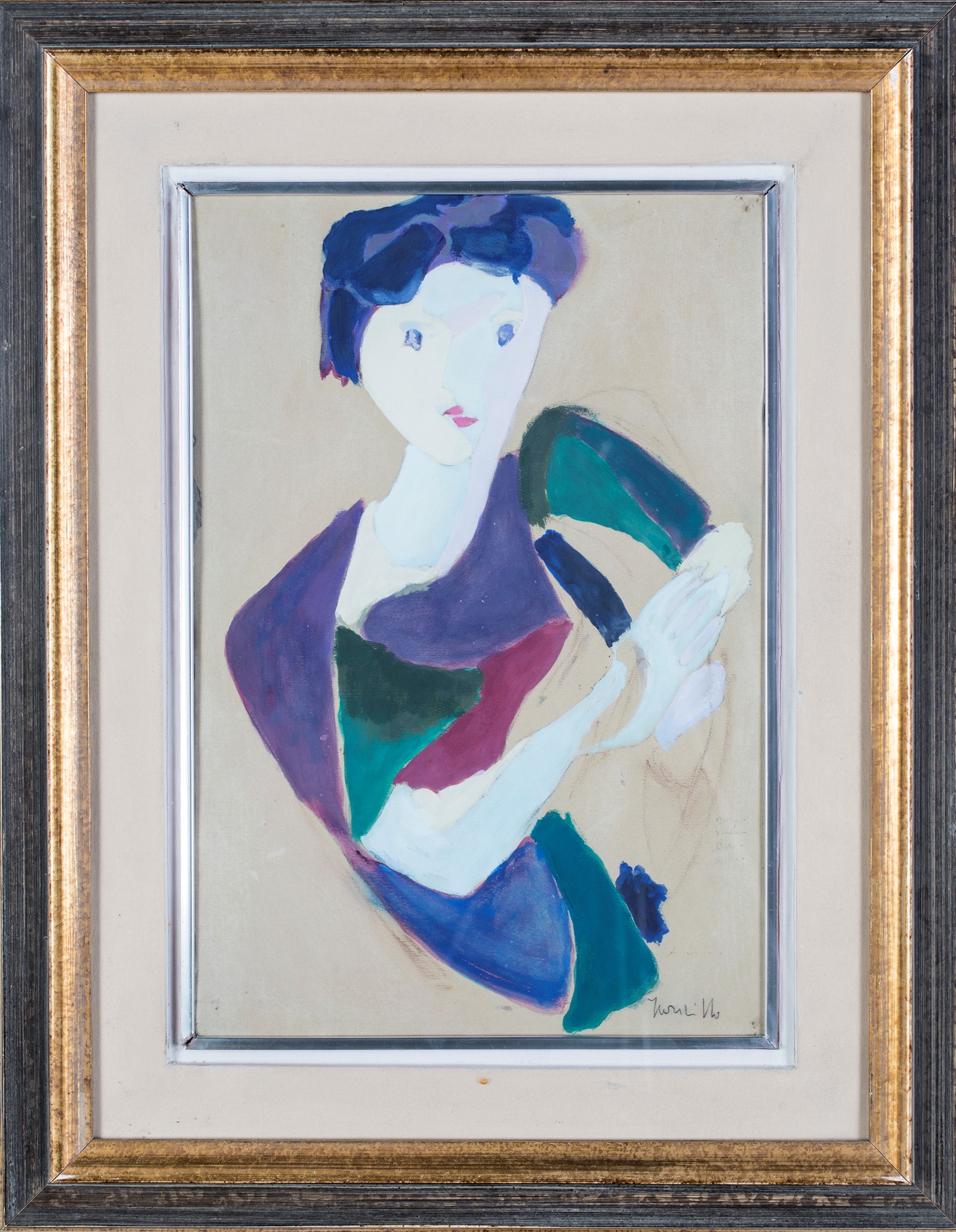 Leonardi Leoncillo, Ritratto della signora Momiliano, 1946 Matita grassa nera e acquarello a vari colori su carta cm 46x30 Firma in basso a destra