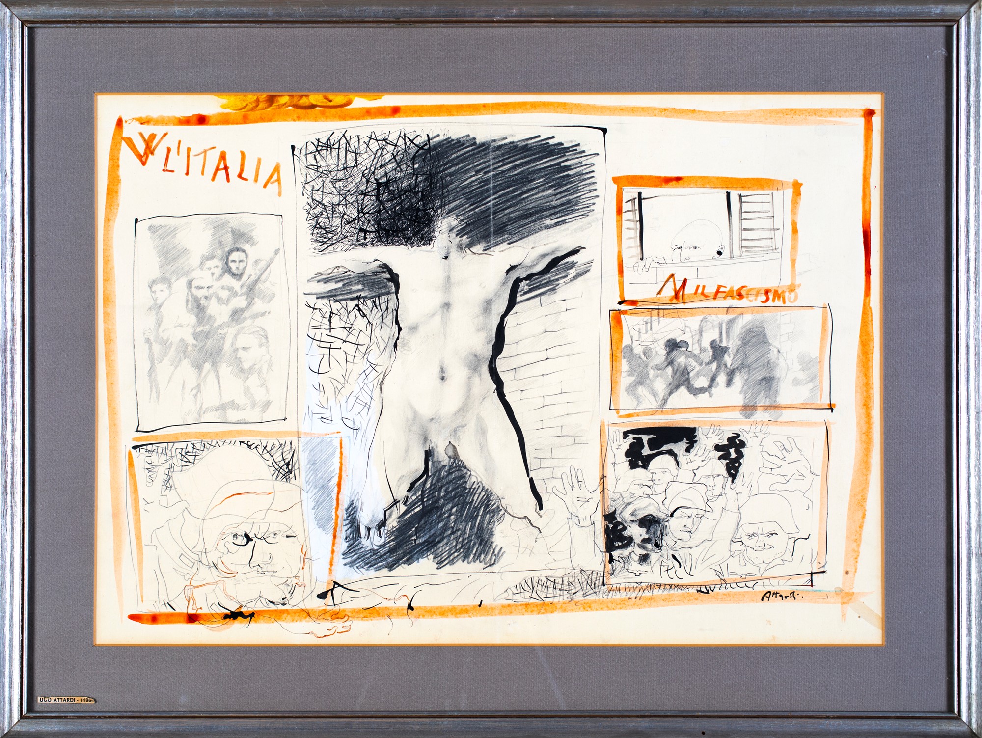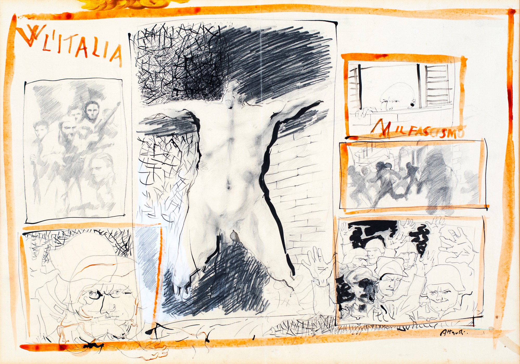 Lot 48 | Ugo Attardi, Viva l'Italia abbasso il Fascismo, 1964 Matita, china e...