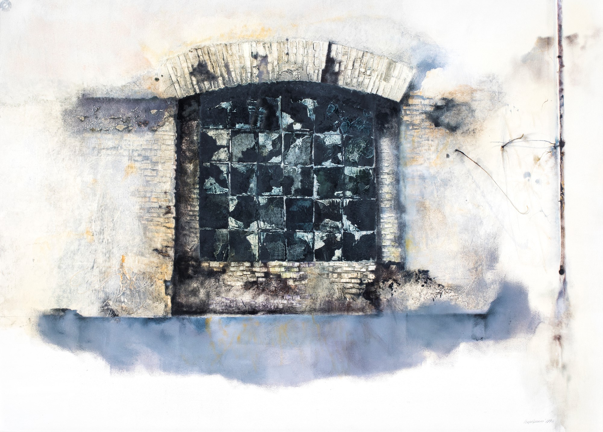 Renzo Vespignani, Finestra, 1974 Tecnica mista su carta cm 70x100 Firma e data in basso a destra Renzo Vespignani, Catalogo Ragionato dei Dipinti, 1943-2001, ripr. pag. 222 n. 447