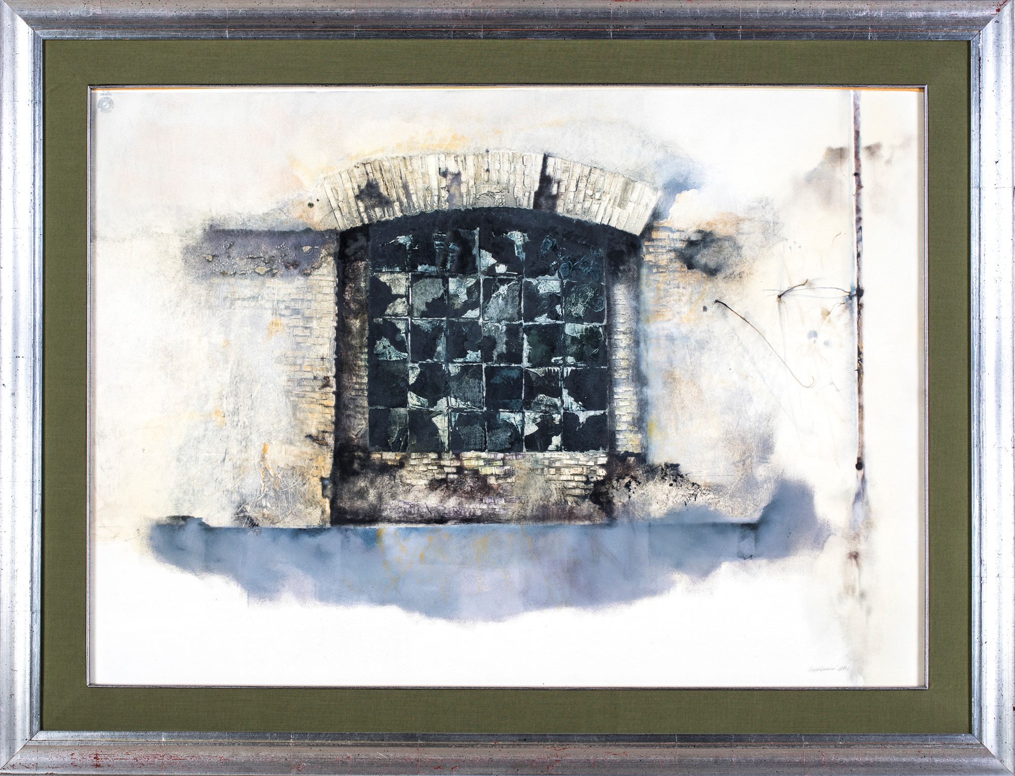 Renzo Vespignani, Finestra, 1974 Tecnica mista su carta cm 70x100 Firma e...