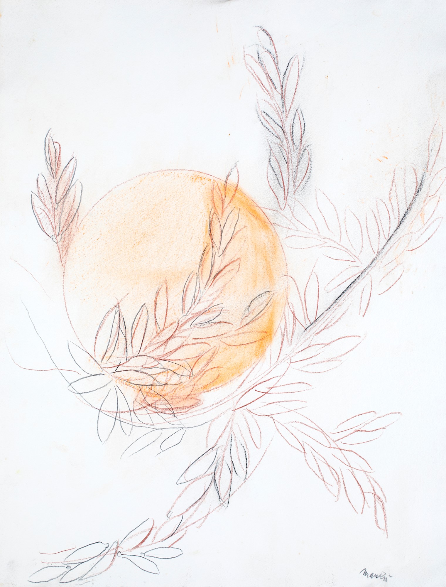 Giacomo Manzù, Senza titolo, Tecnica mista (matita e pastelli cerosi) su...