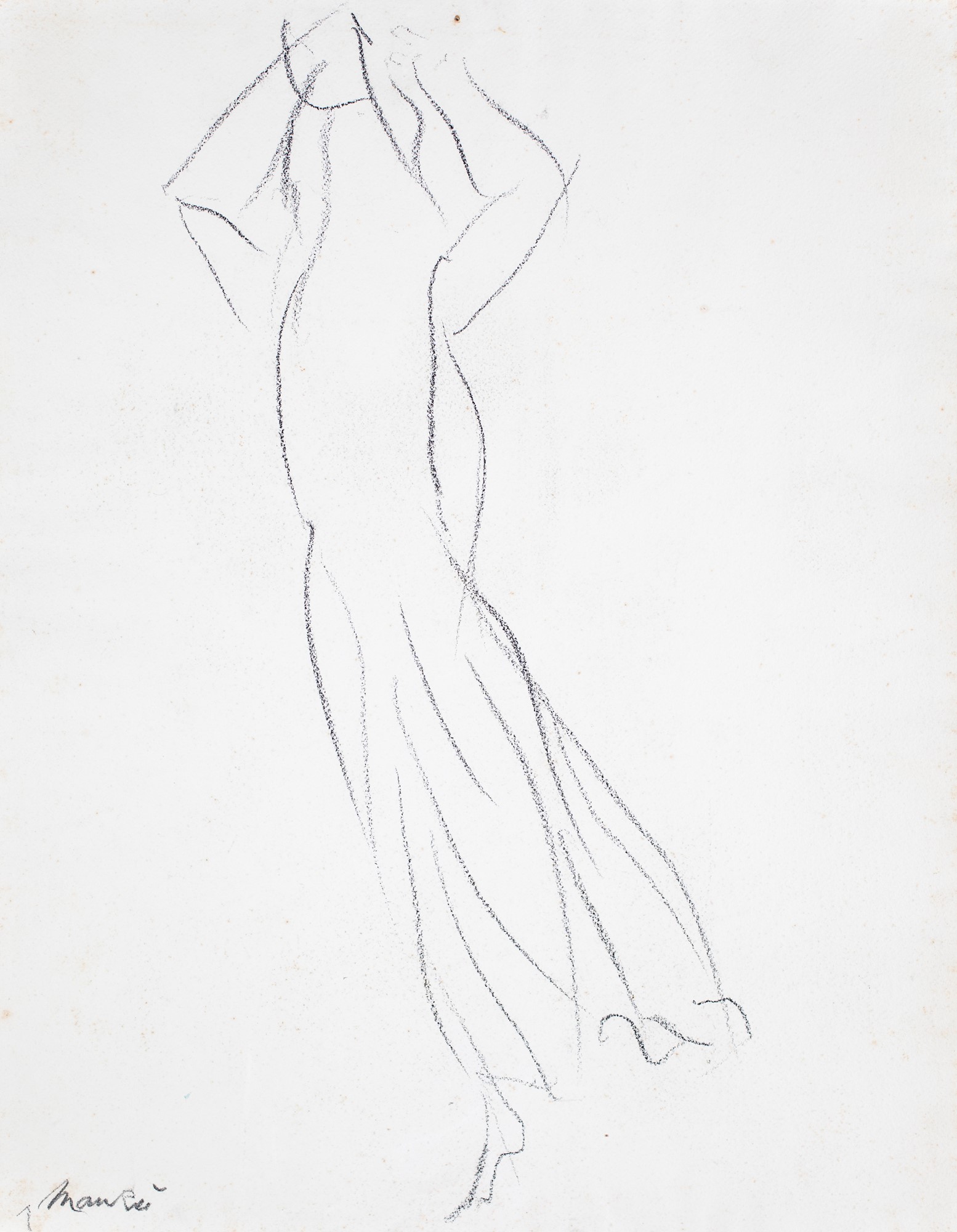 Giacomo Manzù, Figura, Carboncino su carta cm 64x49,5 Firma sul fronte in basso a sinistra "Manzù".