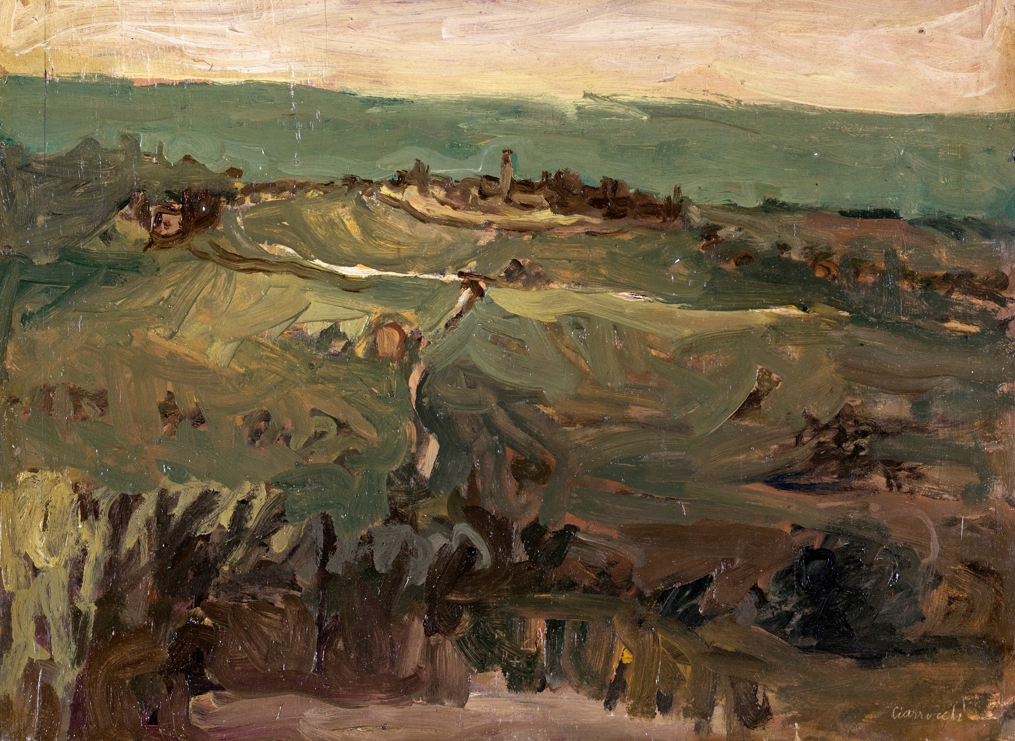 Lot 101 | Arnoldo Ciarrocchi, Paesaggio, Olio su tavola cm 35,7x49 Firma in basso a...