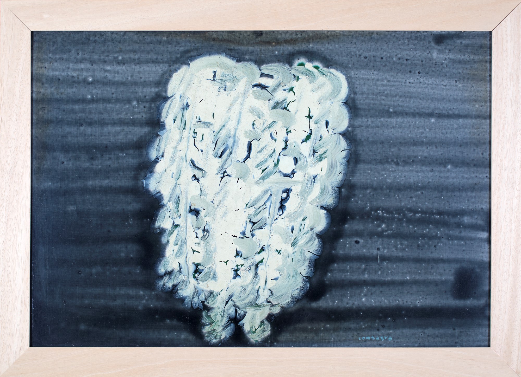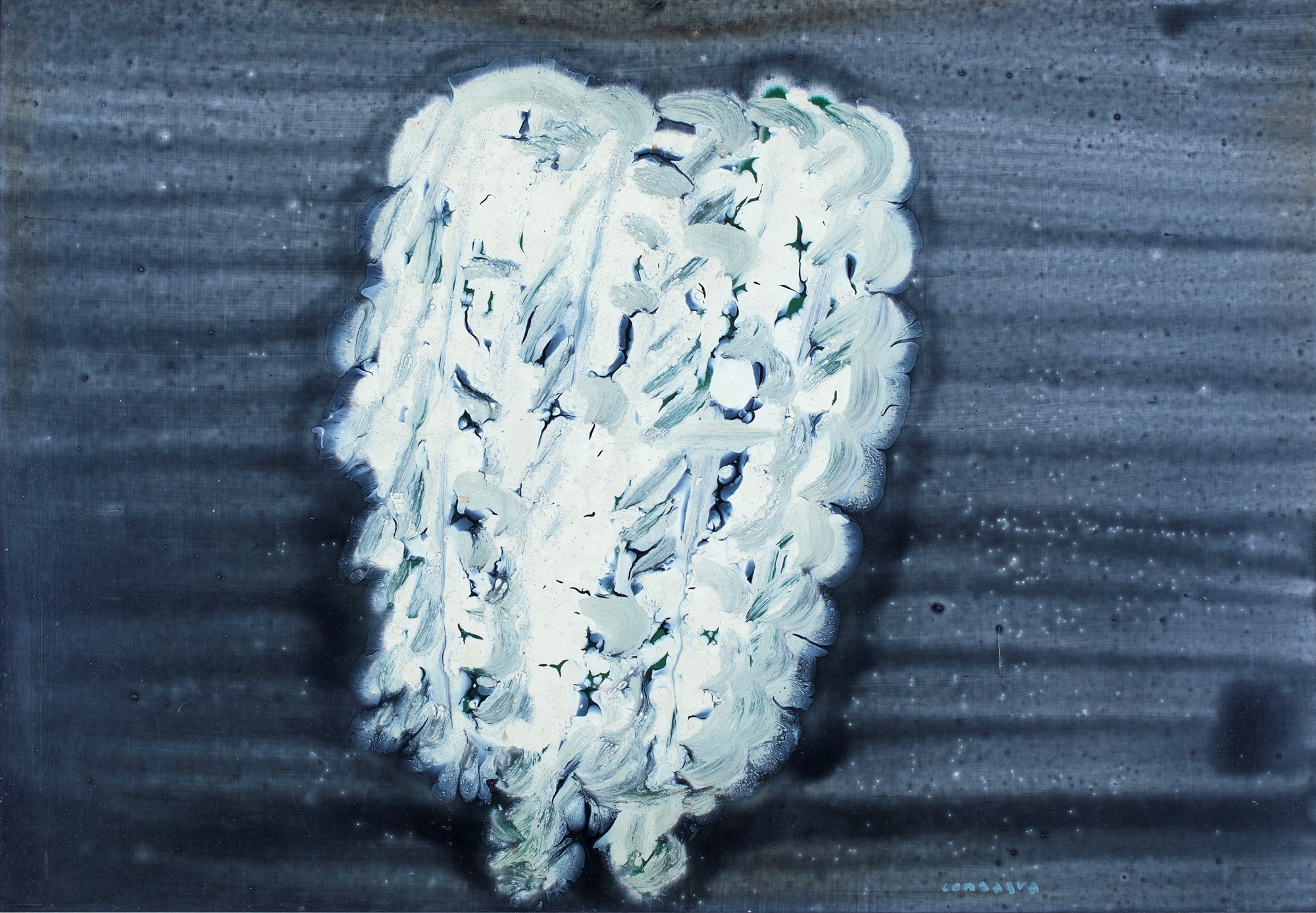 Pietro Consagra, Fondo grigio striato. I giardini meravigliosi (una immagine)., 1964 Smalto, colori all'anilina su faesite cm 62x90 Firma sul fronte in basso a destra "Consagra".