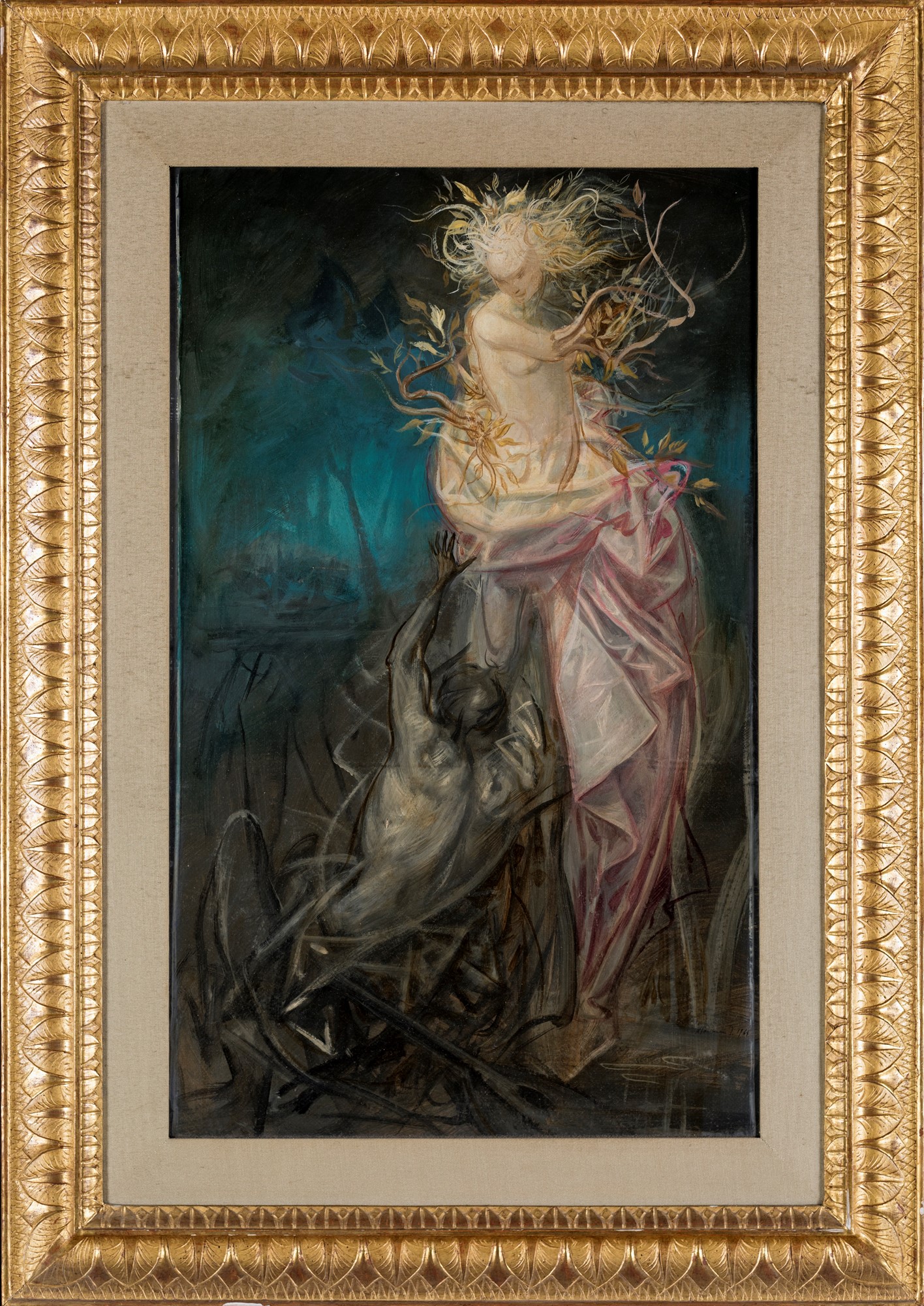 Riccardo Tommaso Ferroni, Senza titolo, 1964 Olio su carta applicata su tela. cm 80x49 Firma e data sul fronte "R.T. Ferroni 1964".