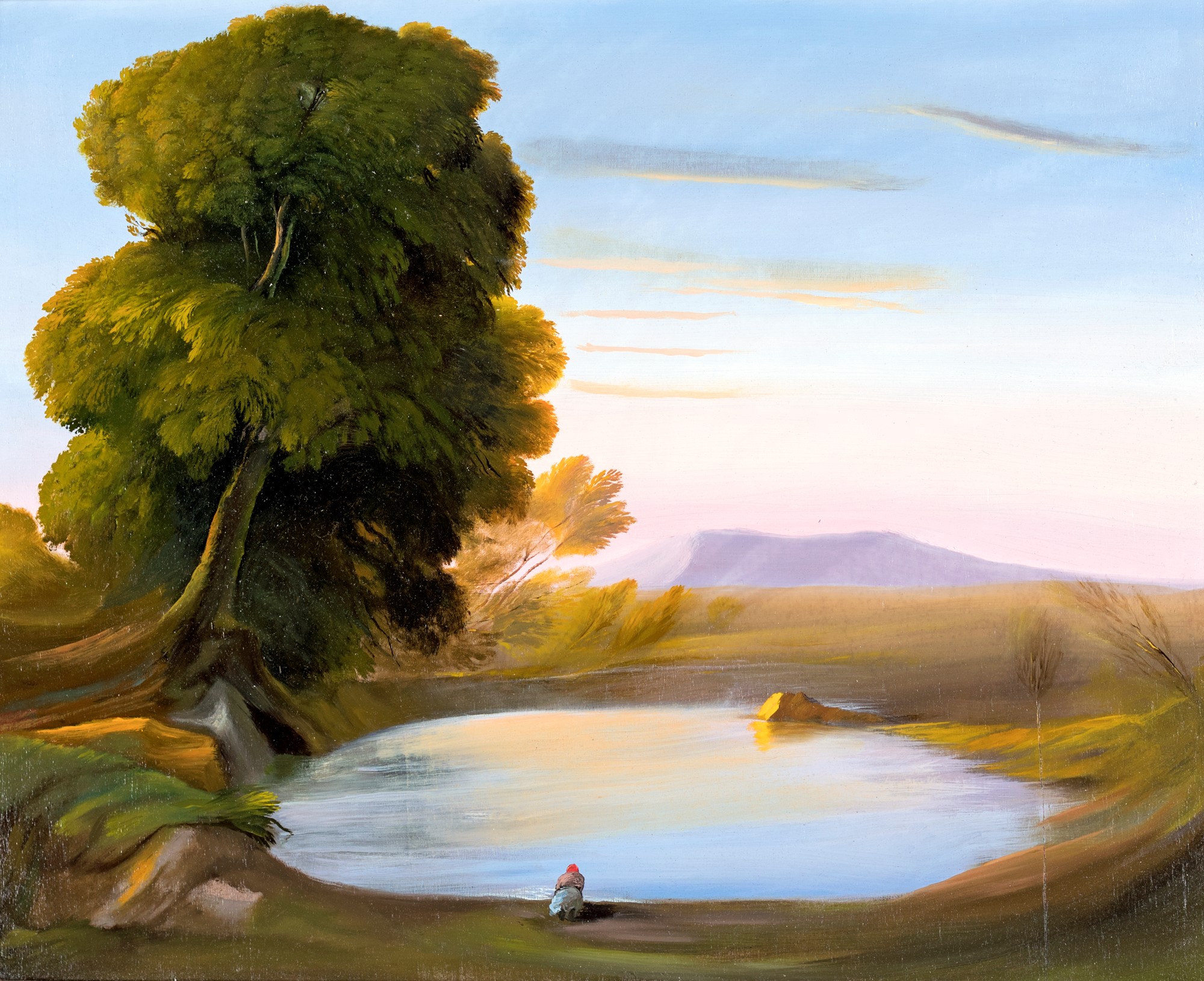 Ubaldo Bartolini, Lavandaia al tramonto, 2003 Olio su tavola cm 40x50 Firma, data e titolo al verso