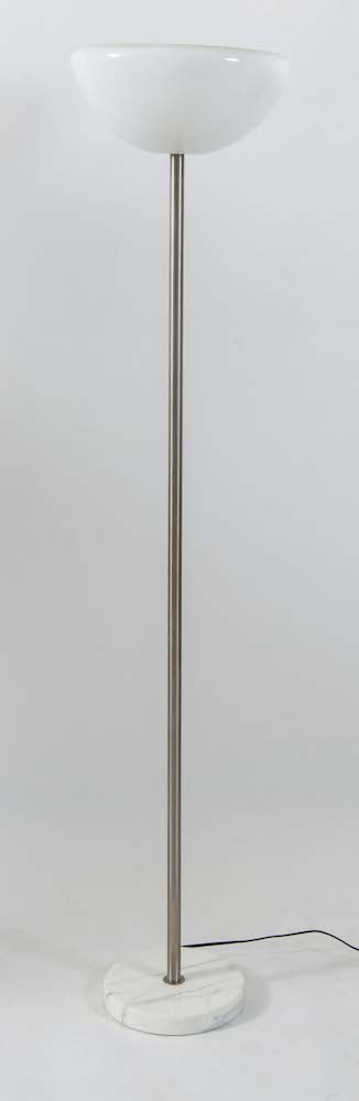 ACHILLE & PIER GIACOMO CASTIGLIONI Lampada da terra in metallo cromato, con base in marmo e paralume in vetro modello ‘Papavero’. Marchio originale. Prod. Flos, Italia, 1964 ca. Cm 172x36x36