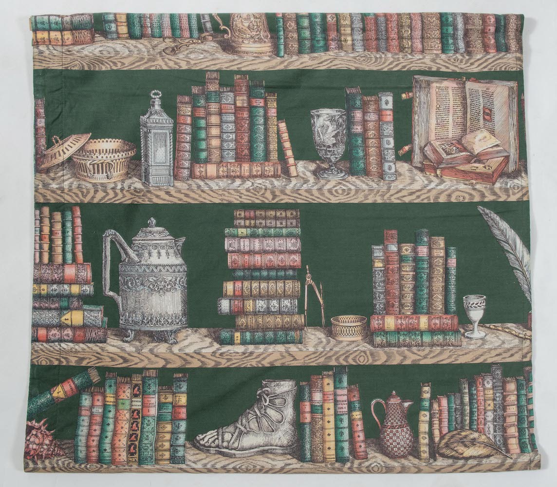PIERO FORNASETTI Tela della serie Strumenti musicali e libri. Prod. Fornasetti, Italia, 1970 ca. Cm 69,5x78,5. Pubblicazioni: Fornasetti: the complete universe, Rizzoli, Mariuccia Casadio e Barnaba Fornasetti, 2010.