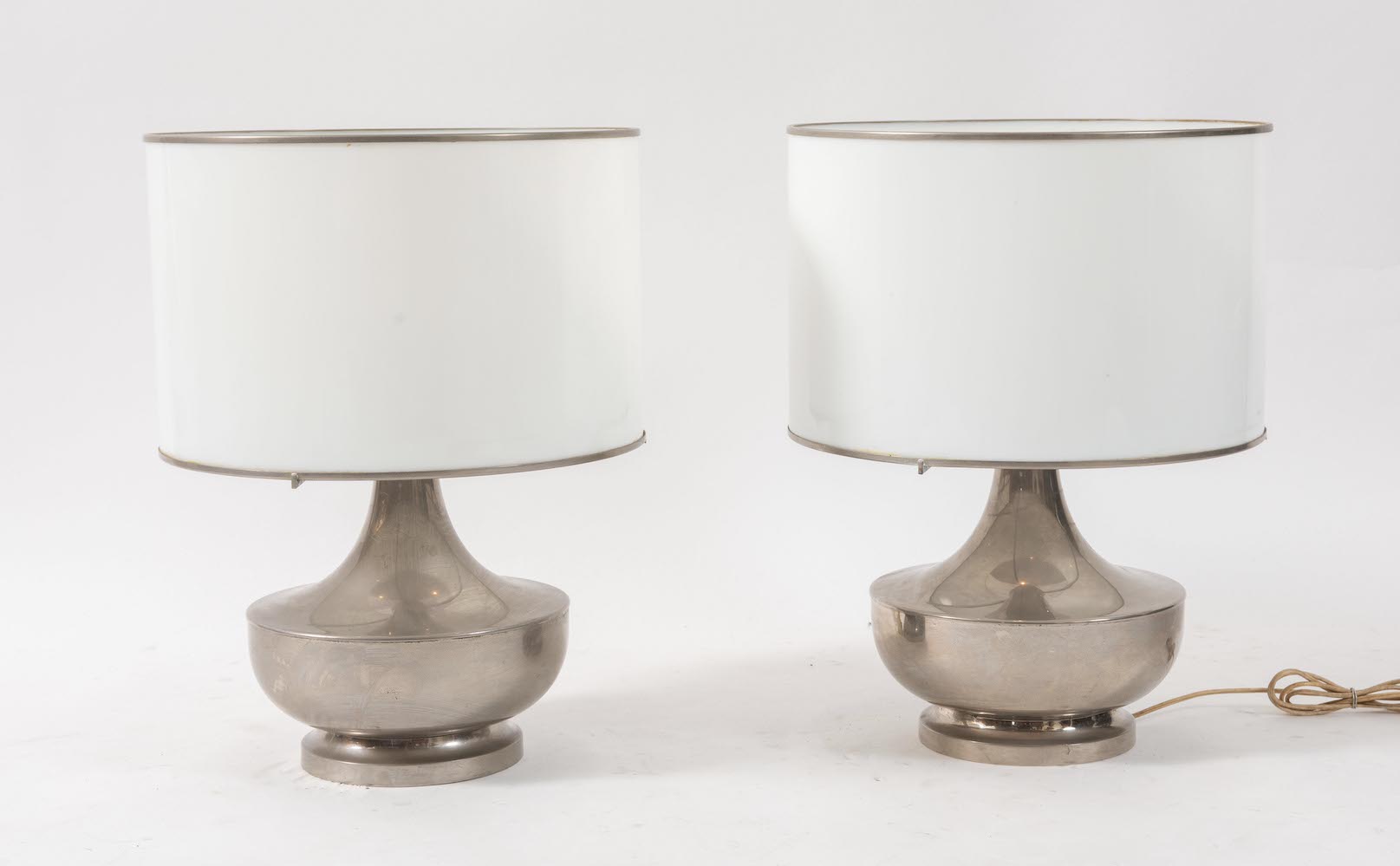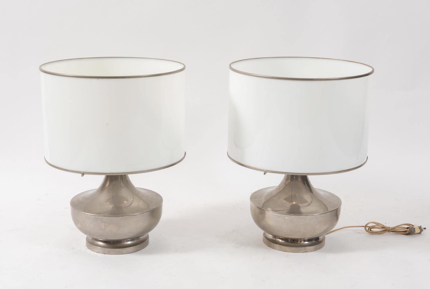 Coppia di lampade da tavolo in metallo con paralume in perspex. Prod. Italia,...
