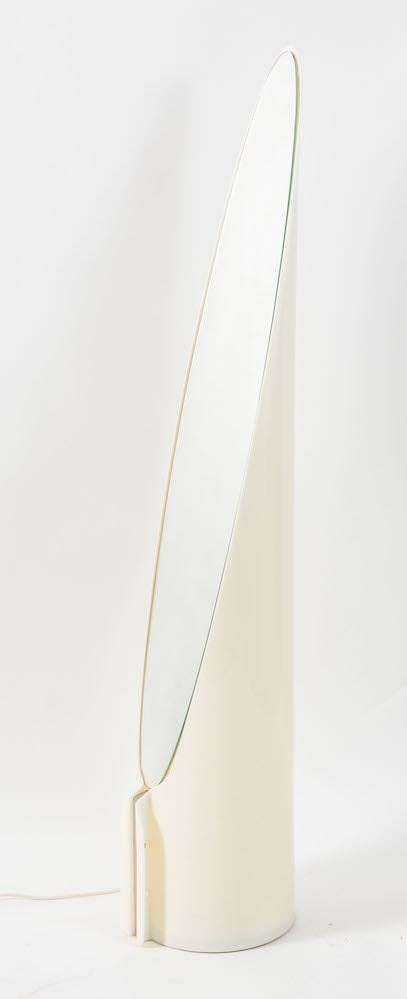 Lampada da terra in ABS con specchio. Lievi difetti. Prod. Italia, 1970 ca. Cm 166x30x30.