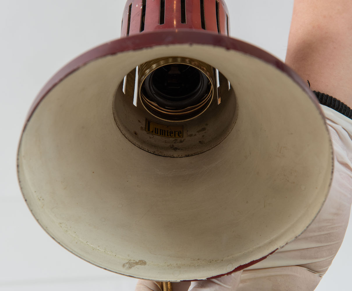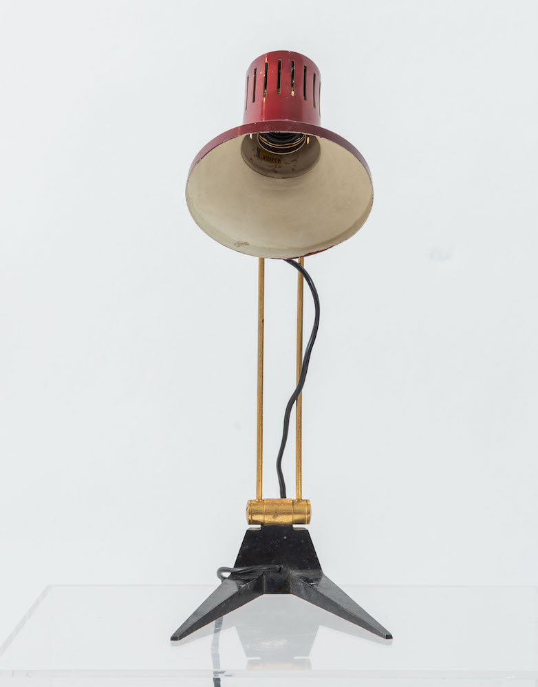 LUMIERE Lampada da tavolo con struttura in metallo. Marchio originale. Prod. Lumiere, Francia, 1960 ca. Cm 41x26x16.