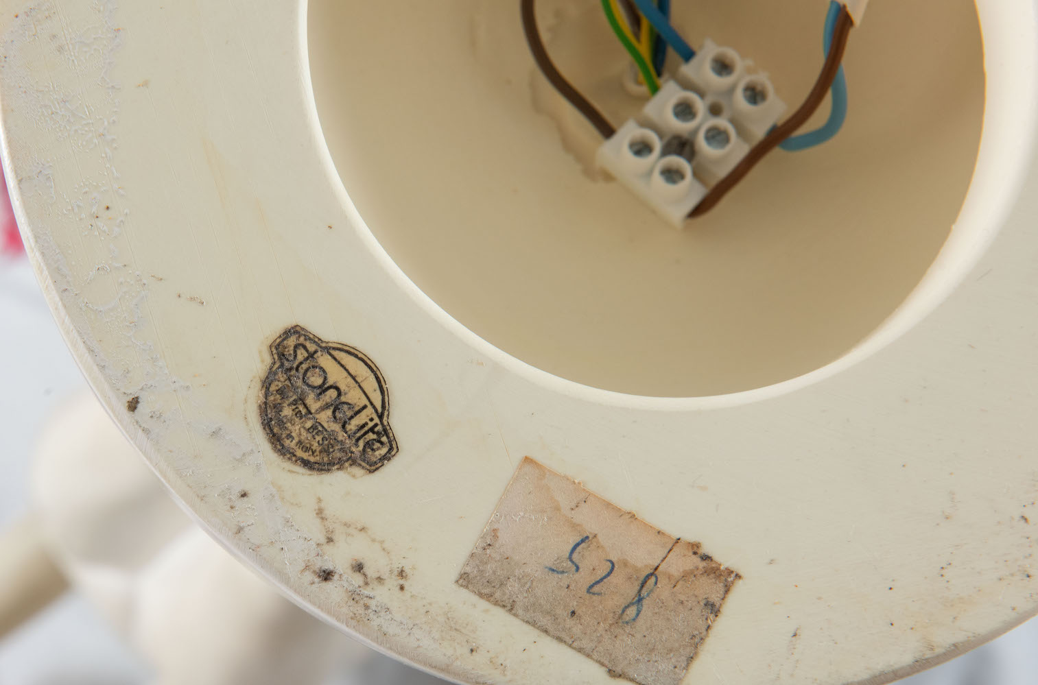STONELITE Lampada da tavolo in resina con sfera in vetro. Marchio originale. Prod. Stonelite, Italia, 1980 ca. Cm 66x43x18.
