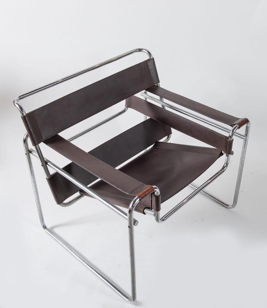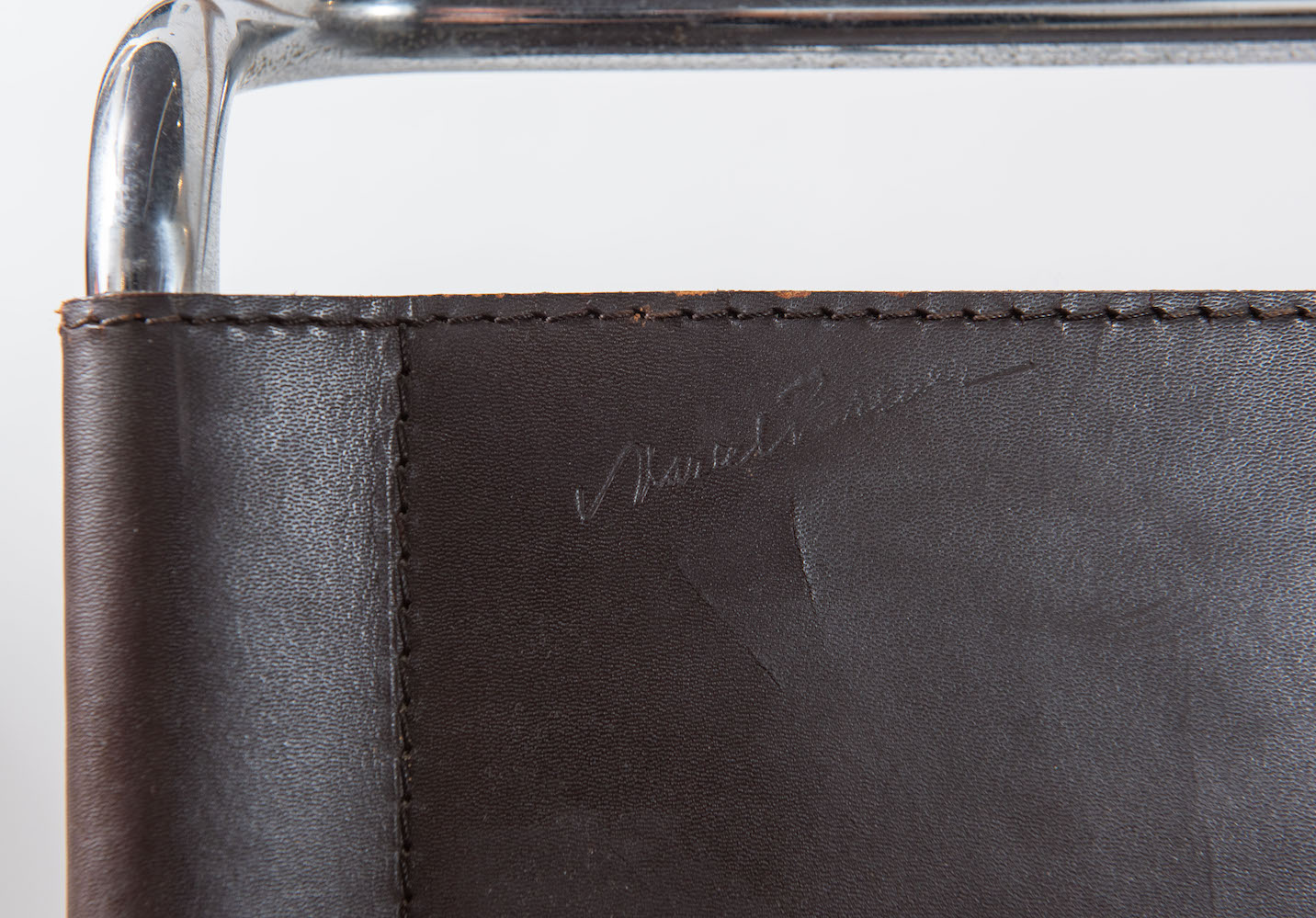 MARCEL BREUER Sedia in metallo e pelle modello B3 Wassily. Marchio originale....