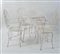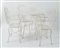 Quattro sedie con tavolo in ferro battuto. Prod. Italia, 1970 ca. Tavolo: cm 71,5x76,5; sedie: cm 98x40x48.