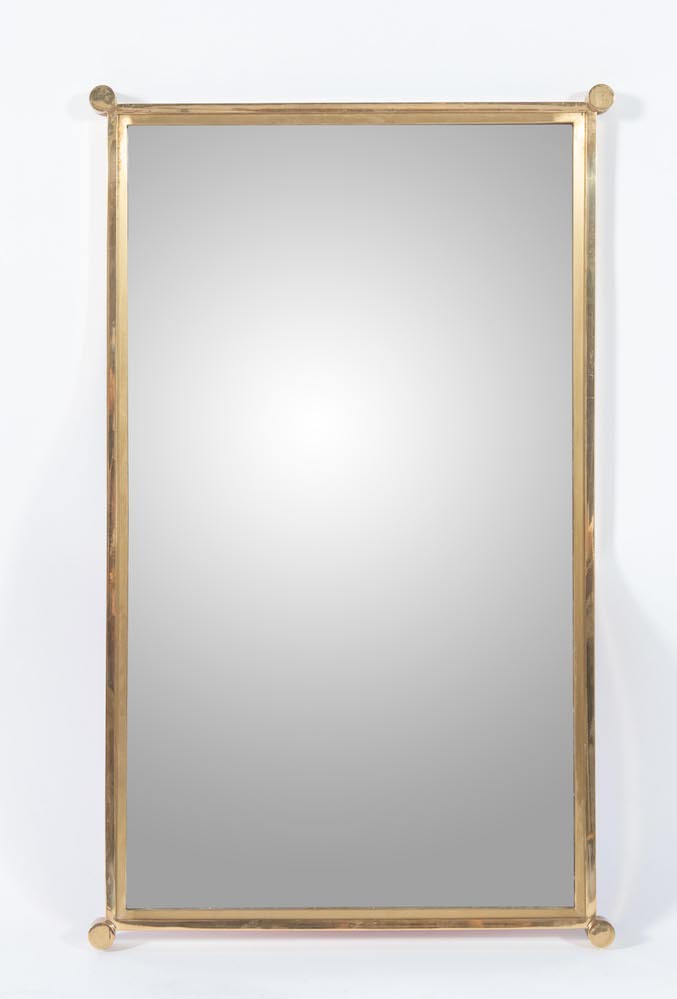 Specchio in ottone e vetro. Prod. Italia, 1970 ca. Cm 80x48x2,5.