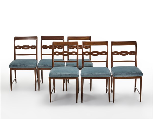 Paolo Buffa Sei sedie con schienale in legno intagliato a forma di "treccia" e s